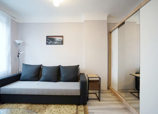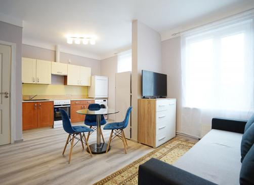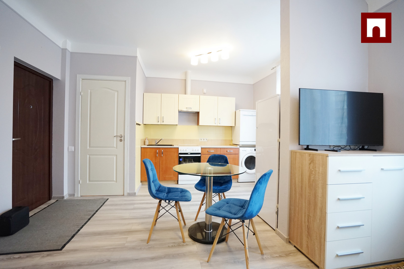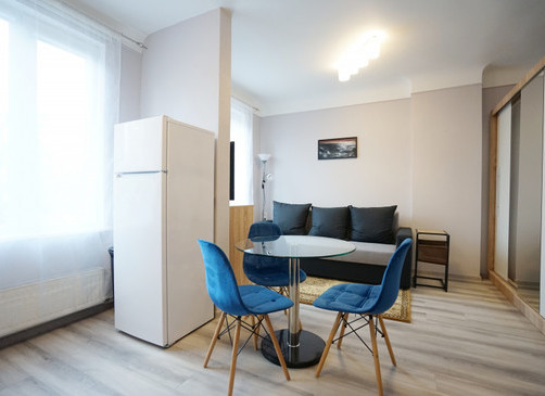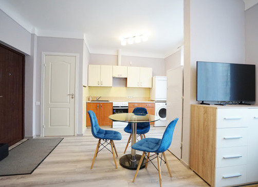 The apartment is fully furnished and equipped with all necessary household appliances.