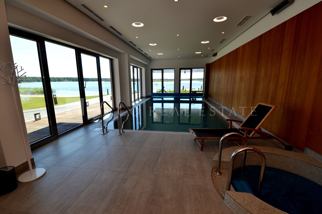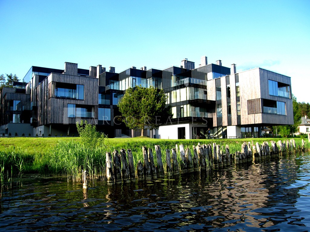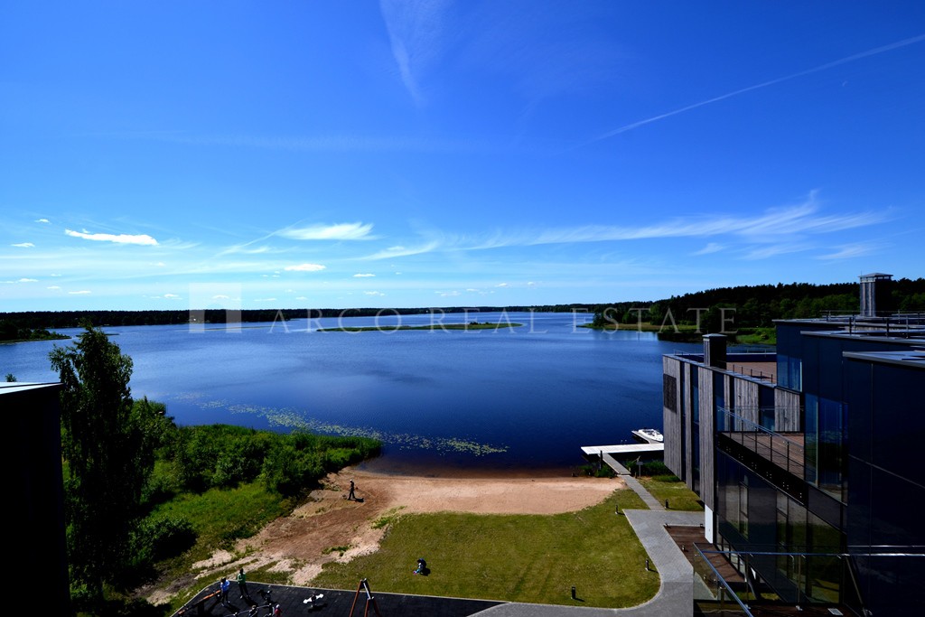 On the first line, exclusive real estate on the shore of the cleanest lake Maly Baltezers in the project THE PEARL, surrounded by a pine forest, is offered for sale. The apartment with a total area of 120.7 sq. m. is sold with full interior decoration, in which the highest quality building materials were used. The apartment is sold with a kitchen and built-in appliances and built-in wardrobes, exclusive furniture. The apartment has a spacious living room-studio with an exit to the terrace with a gorgeous side view of the lake, a beautiful fireplace, two bedrooms with spacious dressing rooms. The apartment has two bathrooms - one with a bathtub, the second with a shower. Air conditioners are installed in the entire apartment. Almost no one lived in the apartment and therefore everything is new, stylish, which will allow the new owner to live in peace and quiet in this truly luxurious apartment. For the convenience and comfort of the residents of the house there is a fitness center, the use of which is included in the utility bills, the house has a swimming pool with a sauna, its own beach, an equipped playground, a berth for yachts and boats for residents of the exclusive house. The house has a very spacious common terrace on the roof of the house, which will allow you to enjoy a direct view of the lake and where you can spend your leisure time. The project is surrounded by a pine forest and there is everything for a comfortable life and the opportunity to relax from the bustle of the city. Riga is 20 minutes away by car, 15 minutes drive from the sea beach Saulkrasti. For residents of the project there are many places in the surroundings of the project with privileges of use - an equestrian club, SPA and others. Nearby is a public transport stop, a modern village of Adazi, where there are many different shopping centers, clubs, restaurants, schools, kindergartens, sports complexes and clubs. Bonus - the price of the apartment includes underground parking. The apartment is furnished with new designer stylish furniture. Write, call, we will arrange an inspection of the apartment at a time convenient for you.