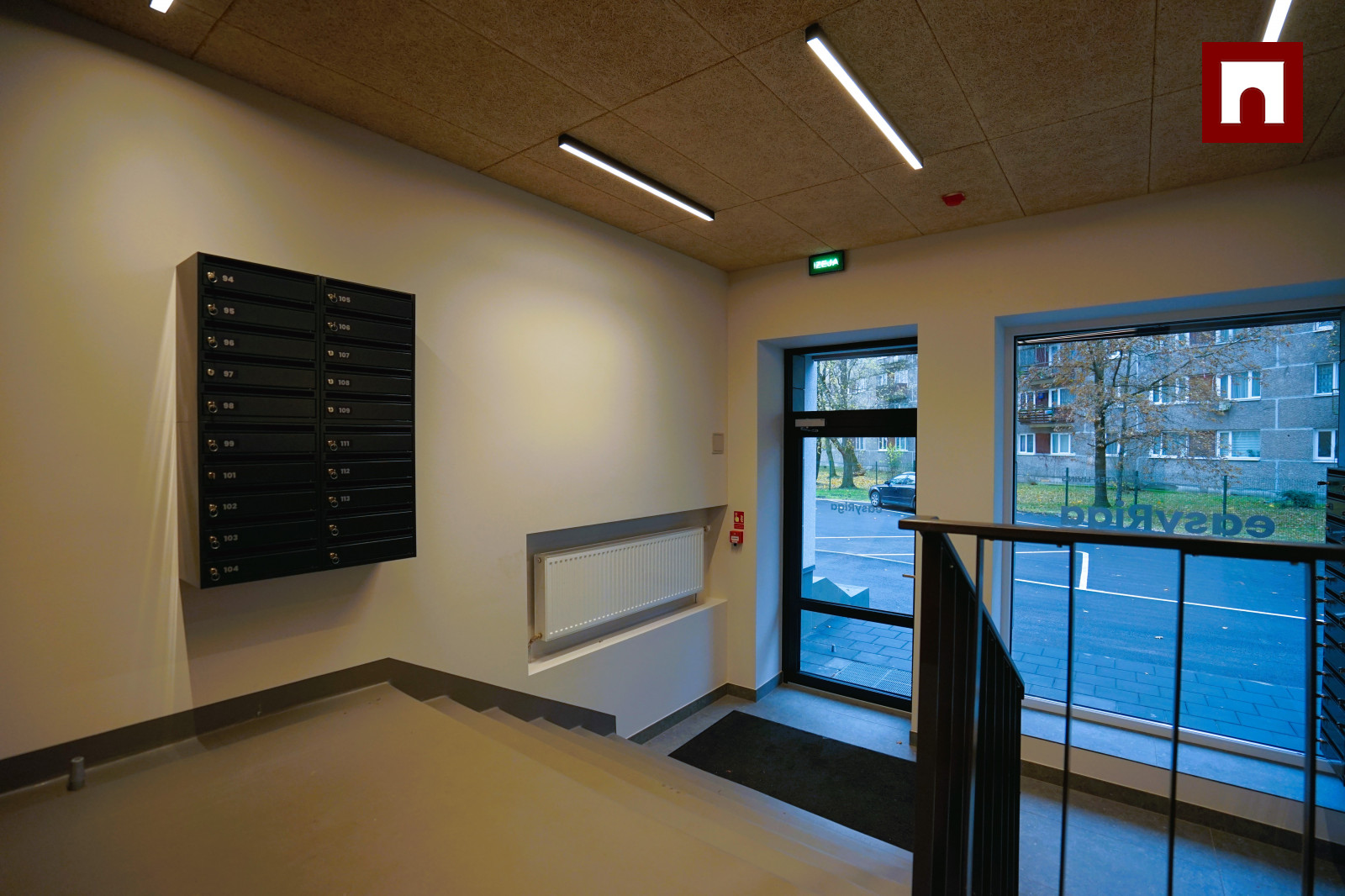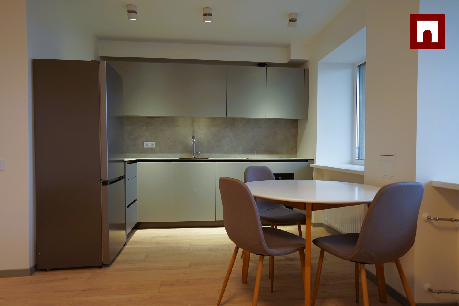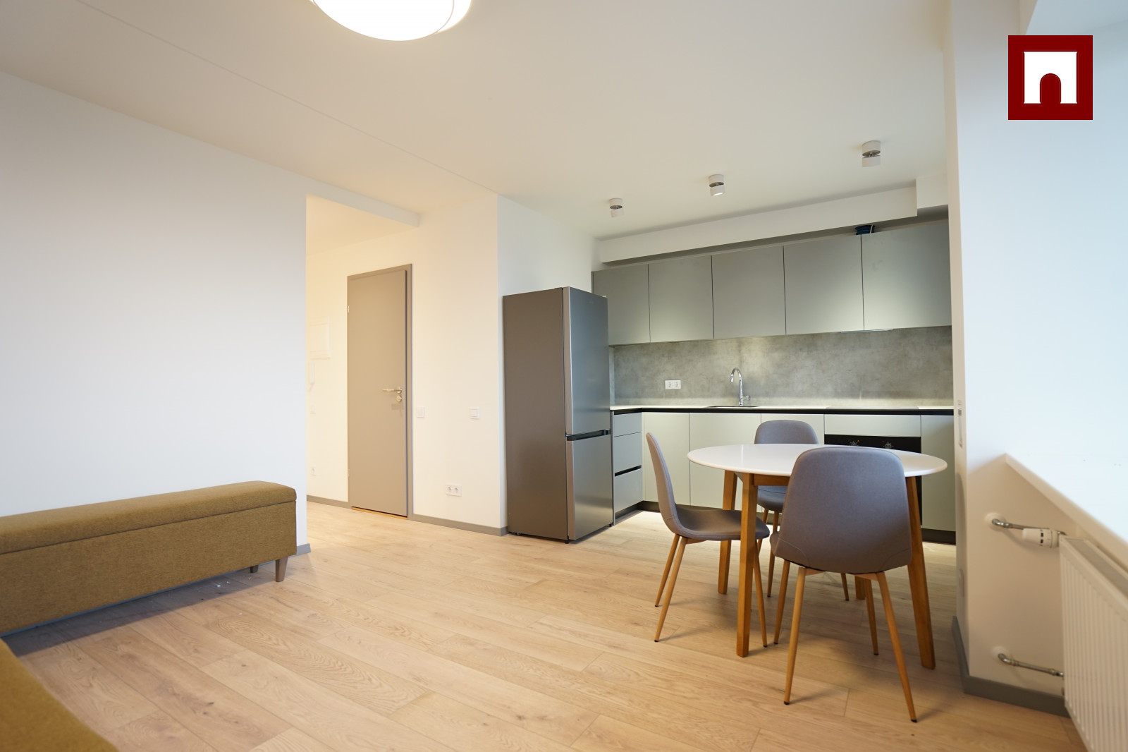 A modern, compact 1-room studio apartment is offered for rent in a renovated building at Aviācijas iela 2 E.