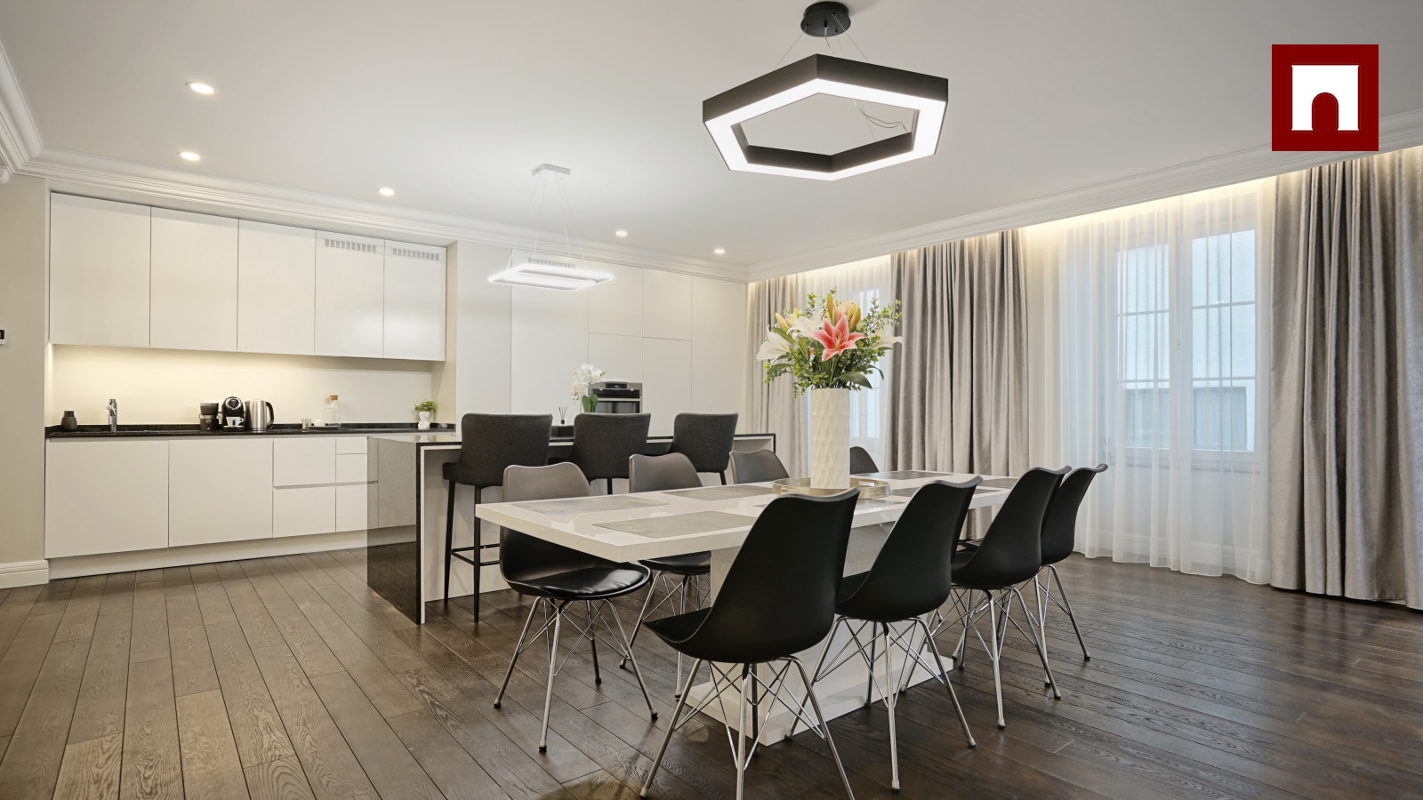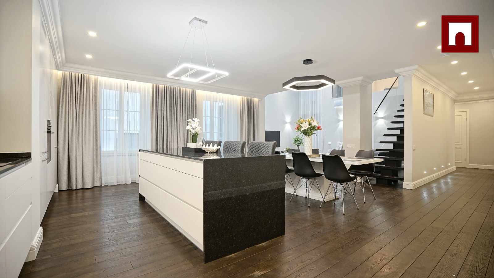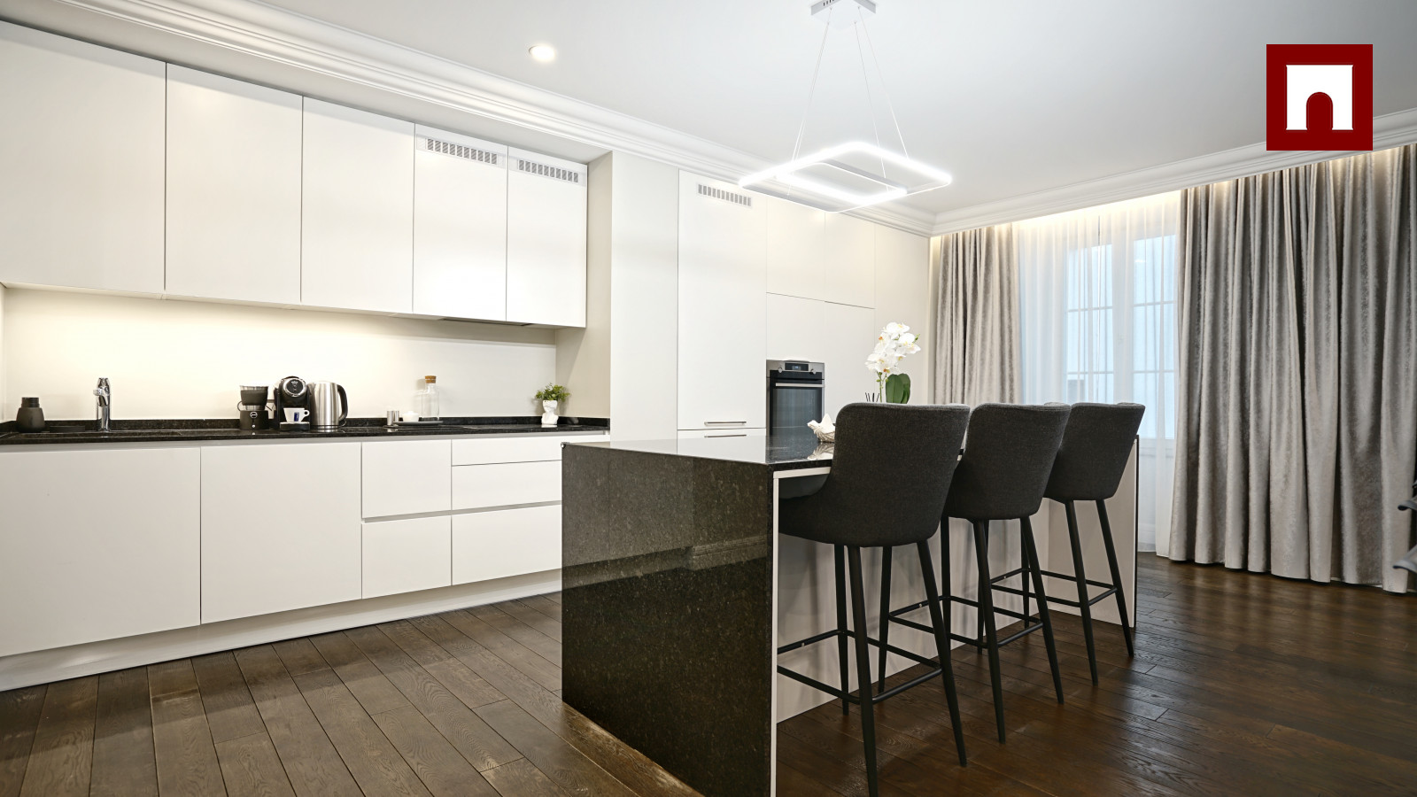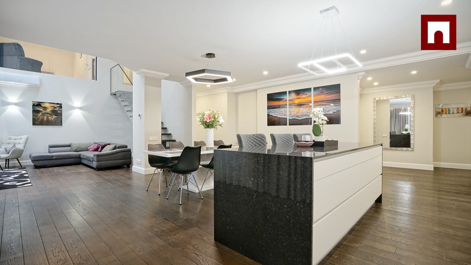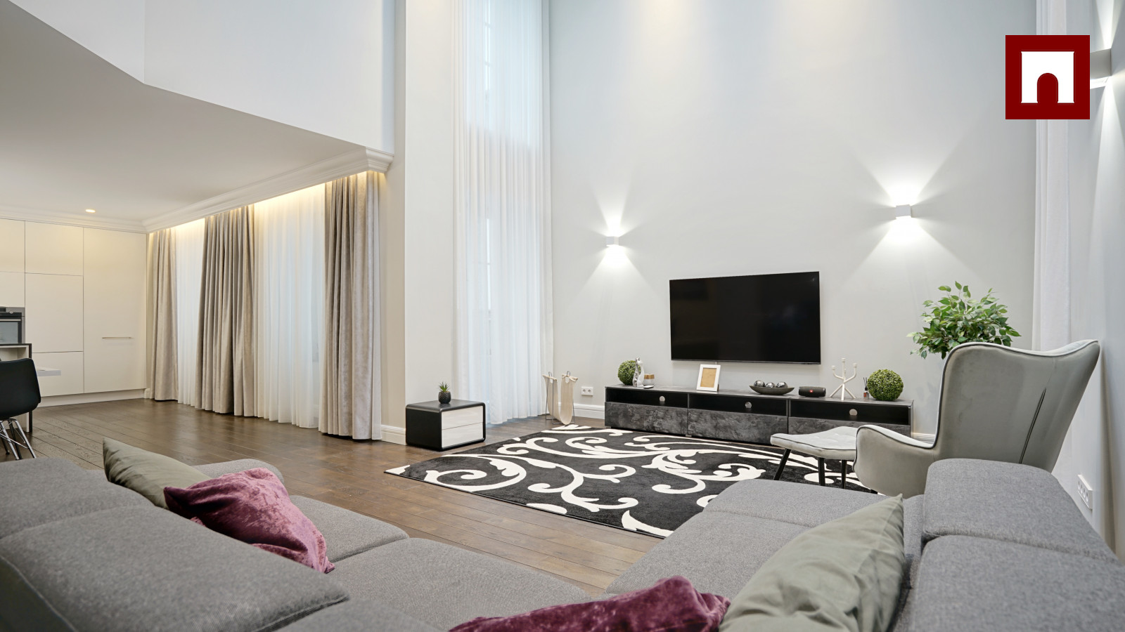 + Spacious and elegant living room, combined with a kitchen