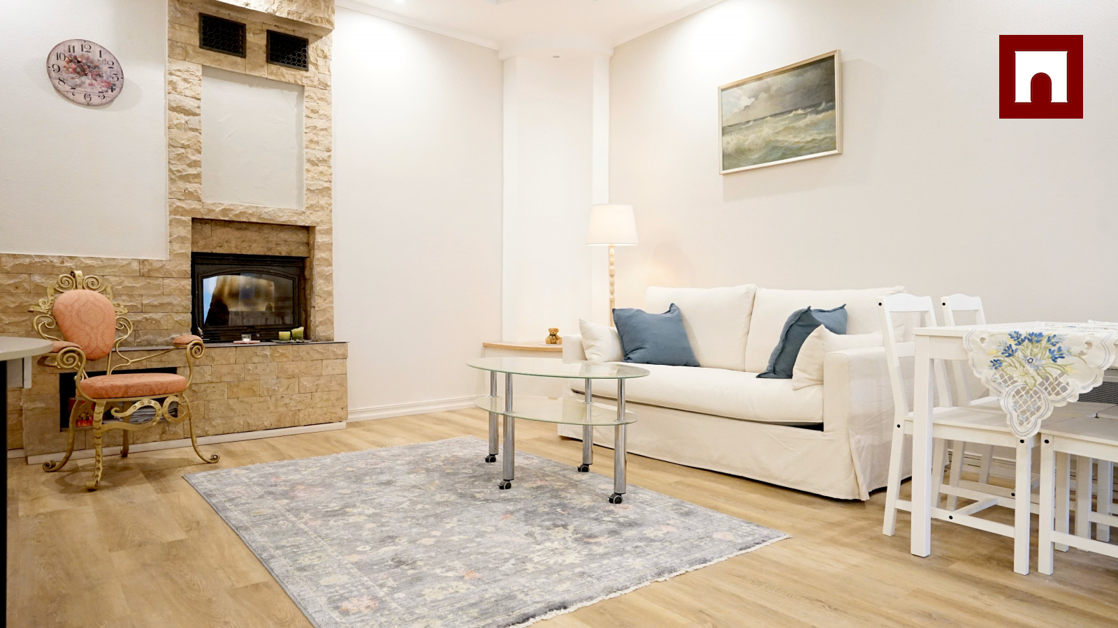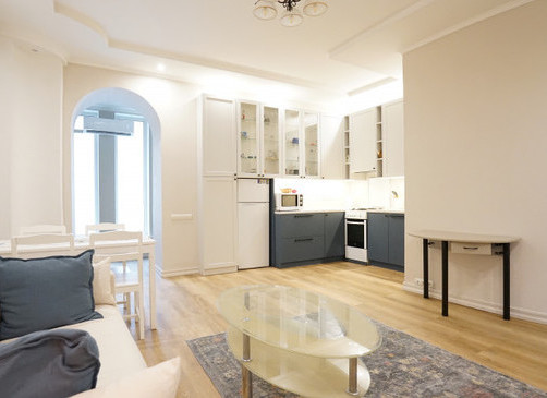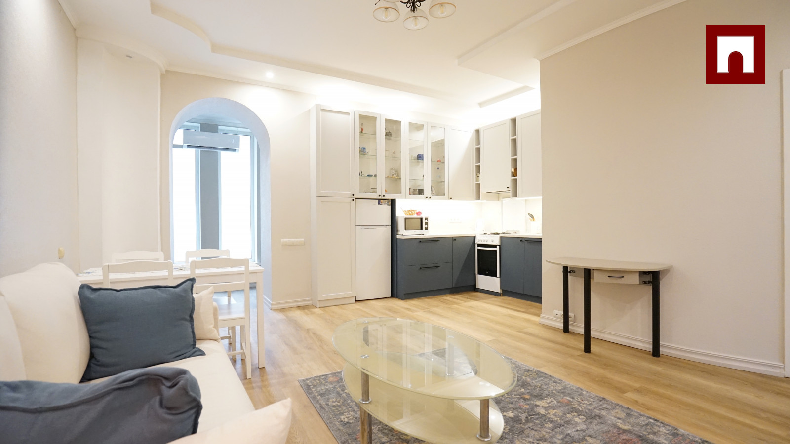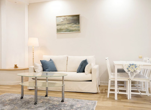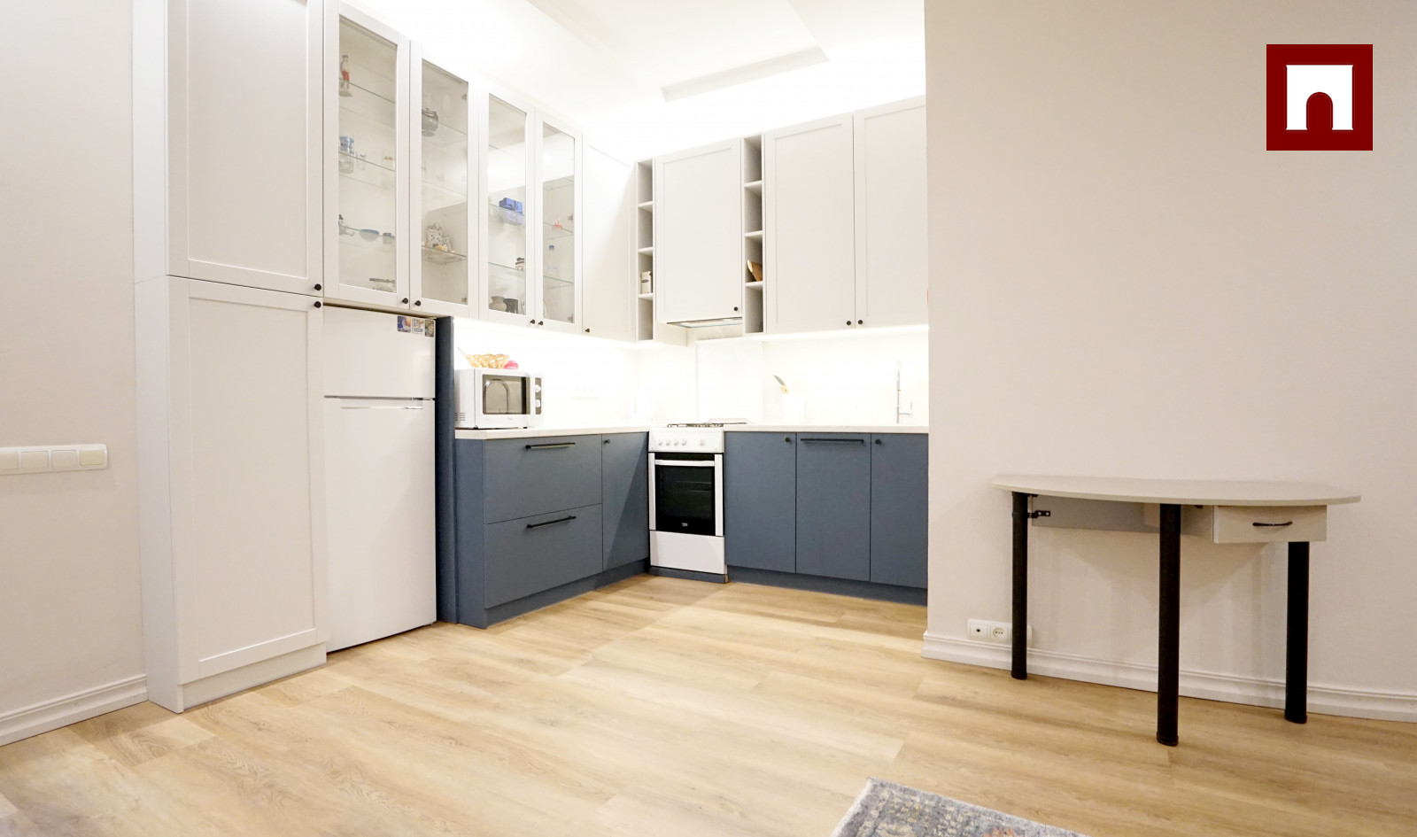 The apartment is fully furnished and equipped with all necessary household appliances.