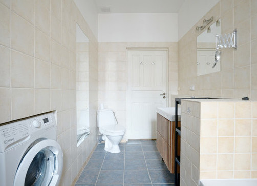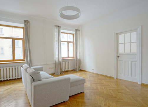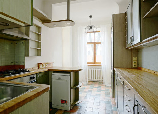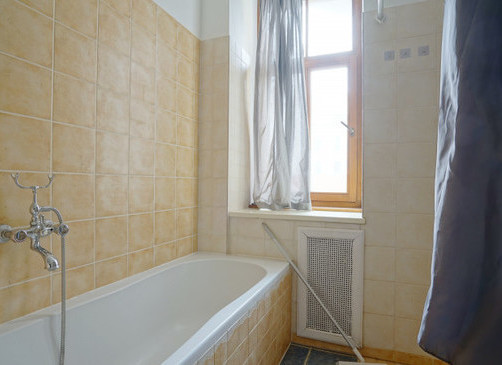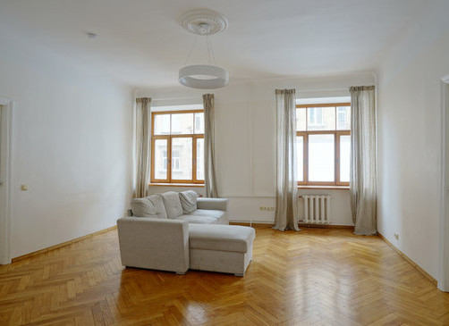The apartment is located in a courtyard house, which ensures peace and quiet while living in the center of Riga.