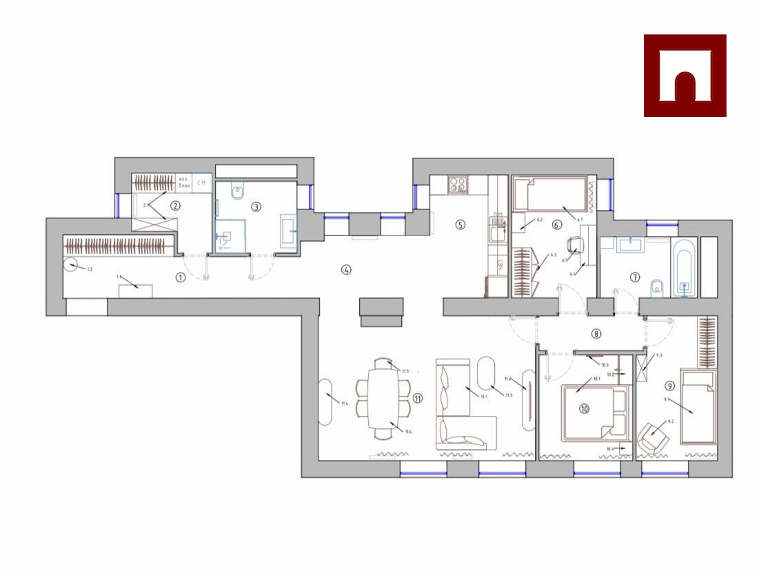 +Three isolated bedrooms: one fully furnished, two - according to your wishes (nursery, study, etc.)