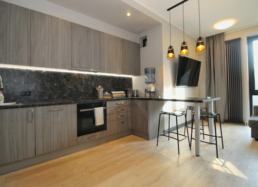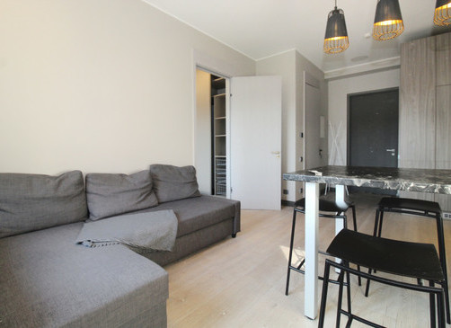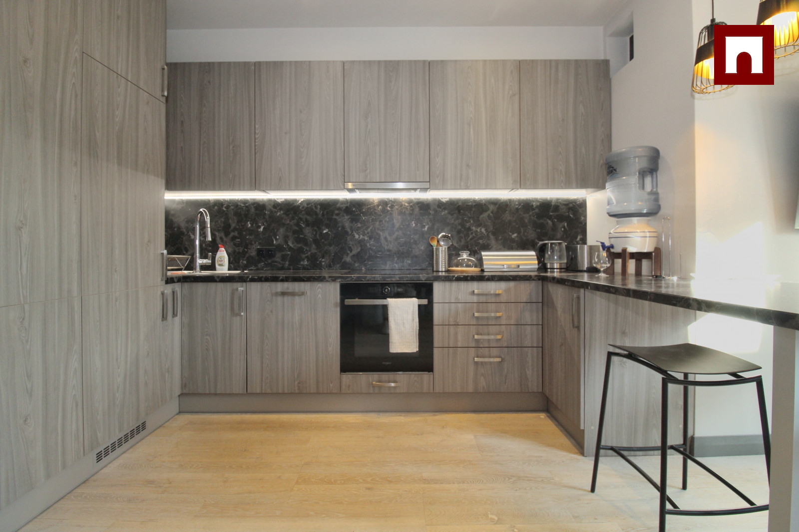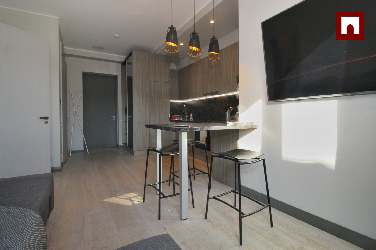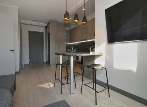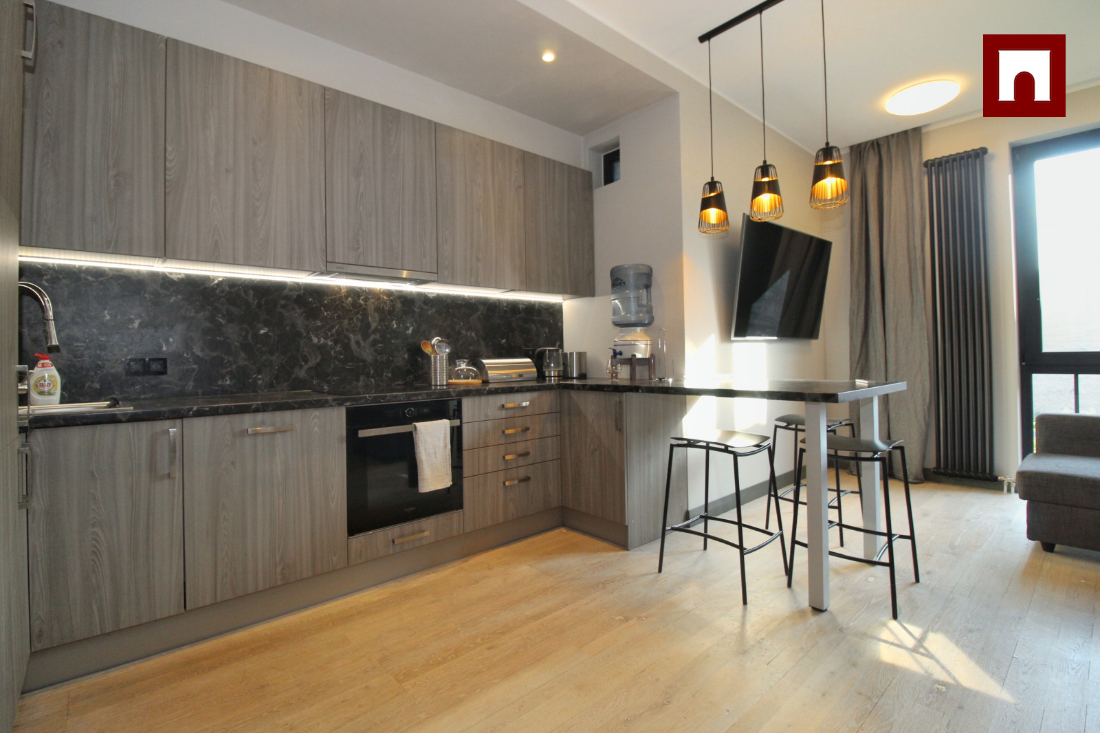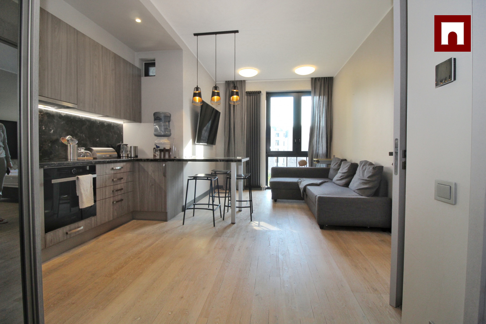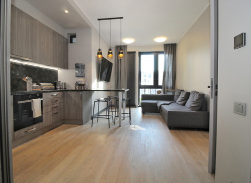 Virtuve apvienota ar viesistabu, 1 guļamistabas, 1 vannas istabas telpa. Dzīvoklis ir aprīkots ar visām modernajām sistēmām: