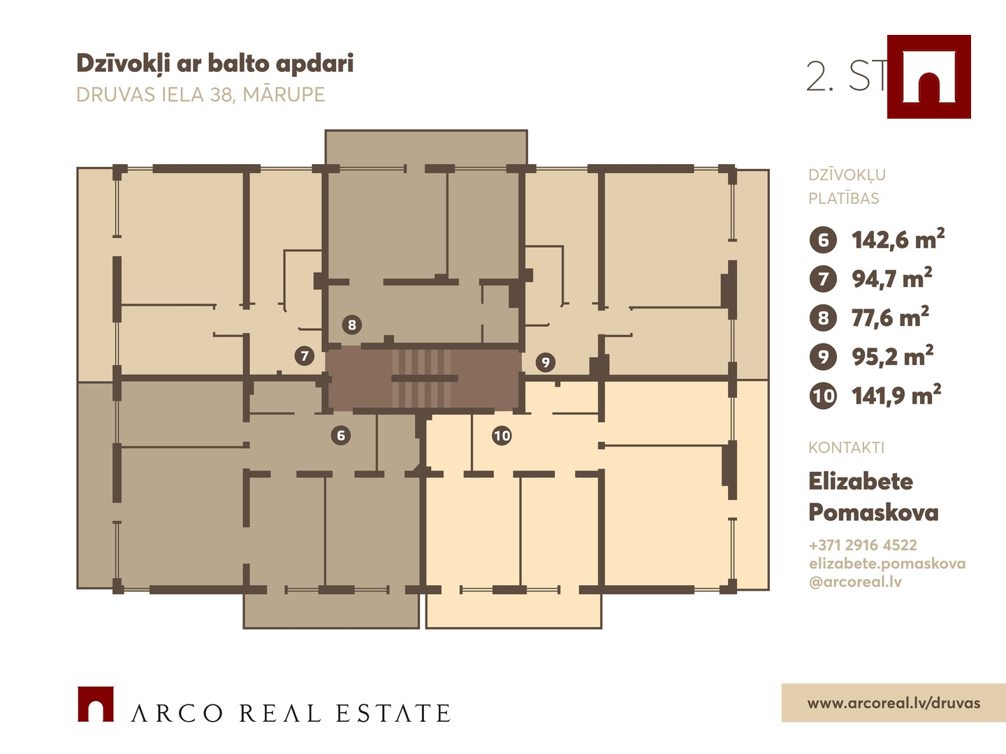 Jaunajā projektā Druvas apartamenti, kas atrodas Druvas ielā 38, Mārupē, tiek pārdots gaišs, plašs divistabu dzīvoklis ar balkonterasi. Dzīvokļa kopējā platība ir 77,60 m², un tas atrodas trīsstāvu ēkas otrajā stāvā.