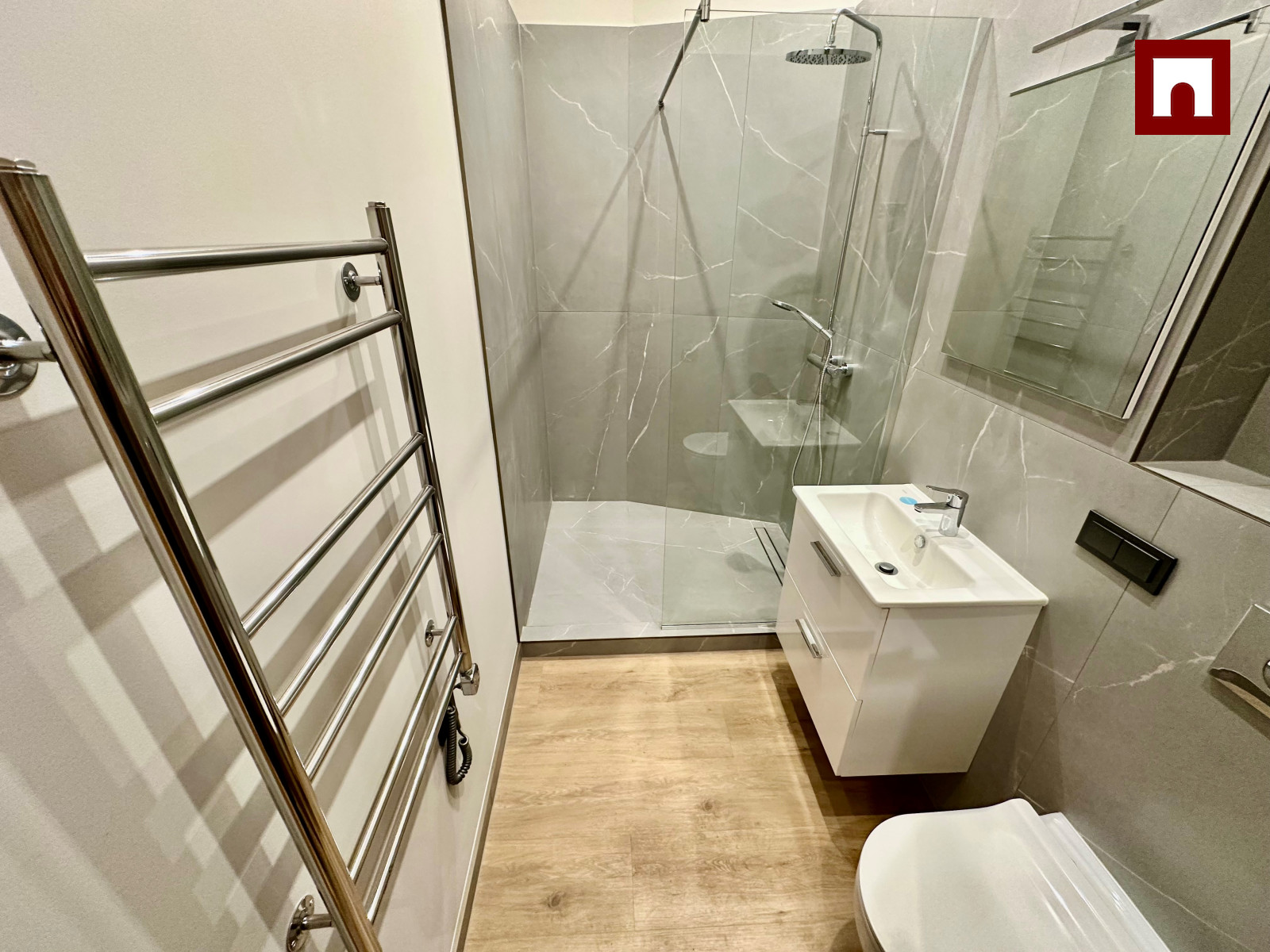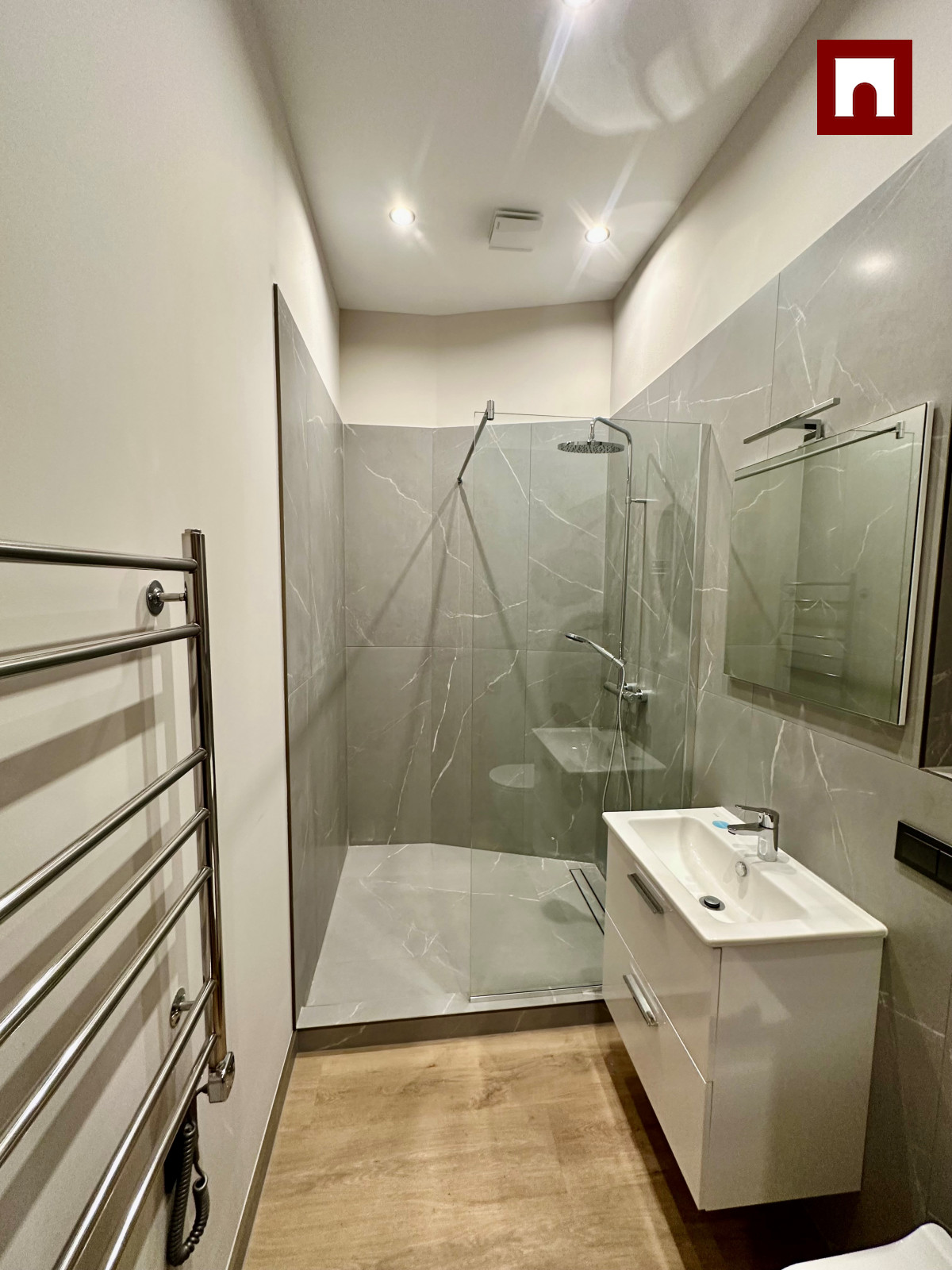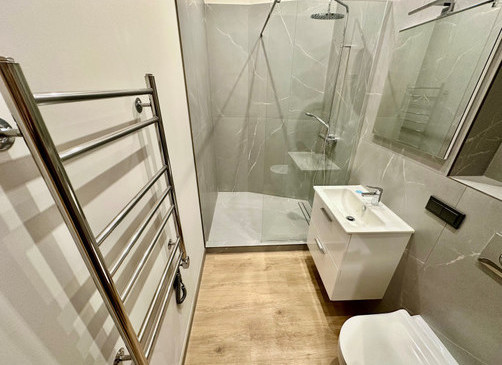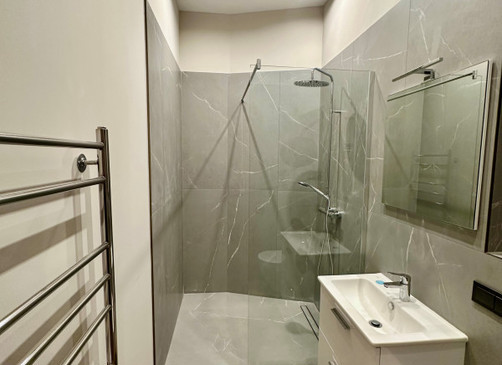 • akmens flīzes vannas istabā;
