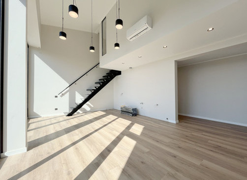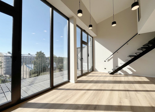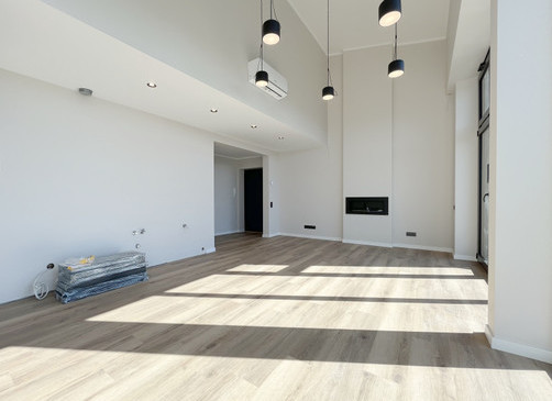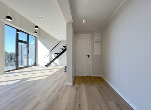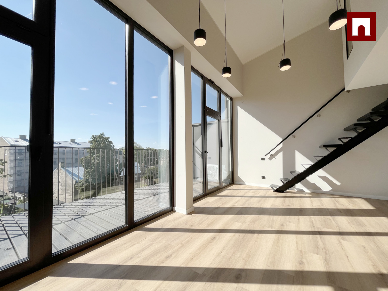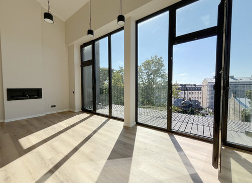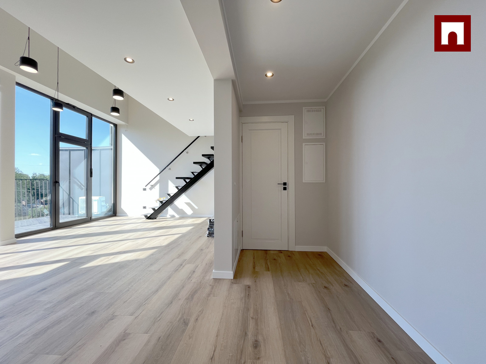 Piedāvājumā divu līmeņu trīsistabu dzīvoklis ar 65,6 kvadrātmetru iekštelpu platību un terasi 12,5 kvadrātmetru platībā.