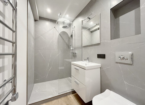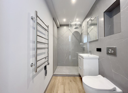 + apkures sistēma ar atsevišķu skaitītāju katram dzīvoklim un siltās grīdas vannas istabā un gaitenī,