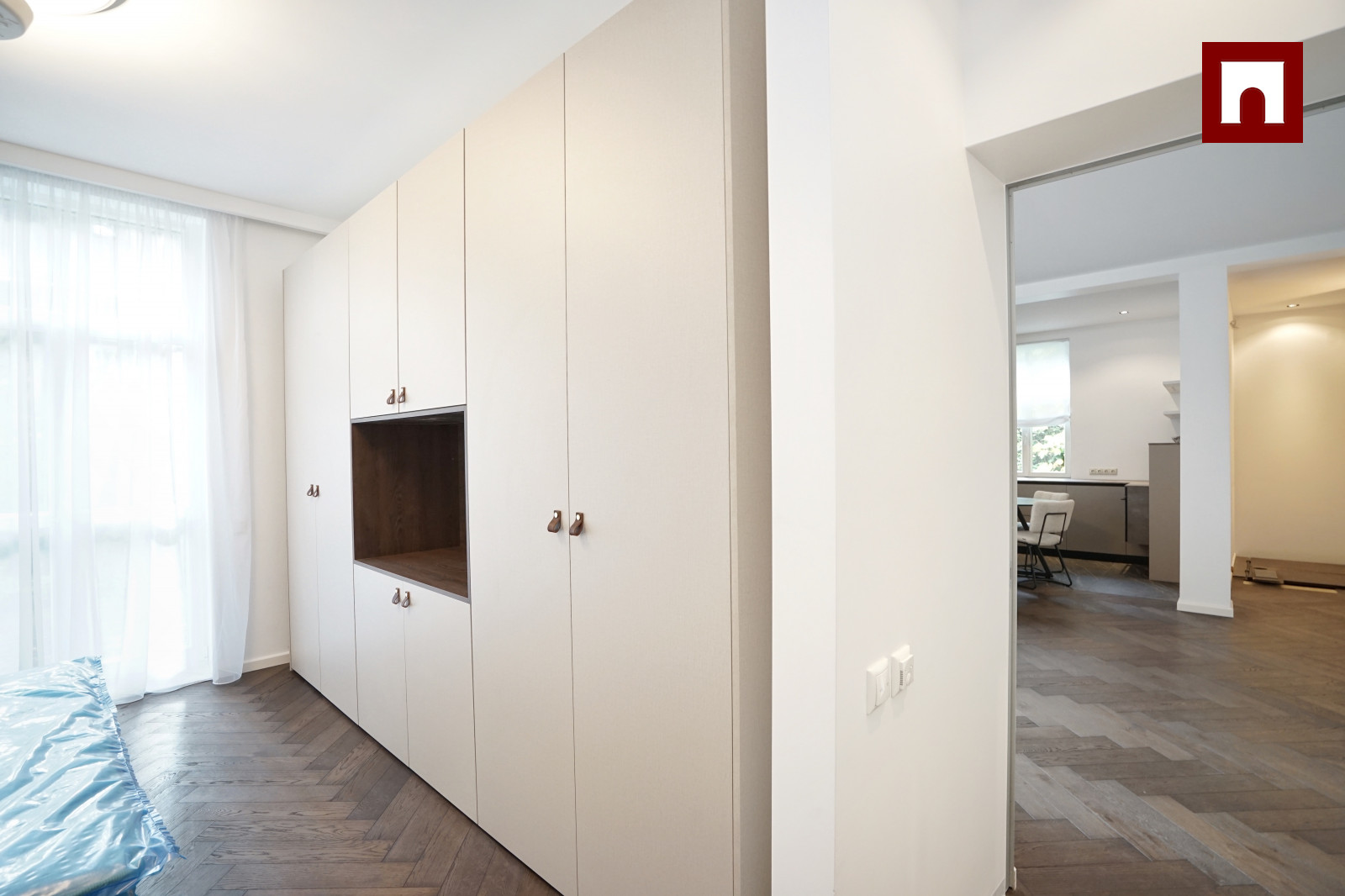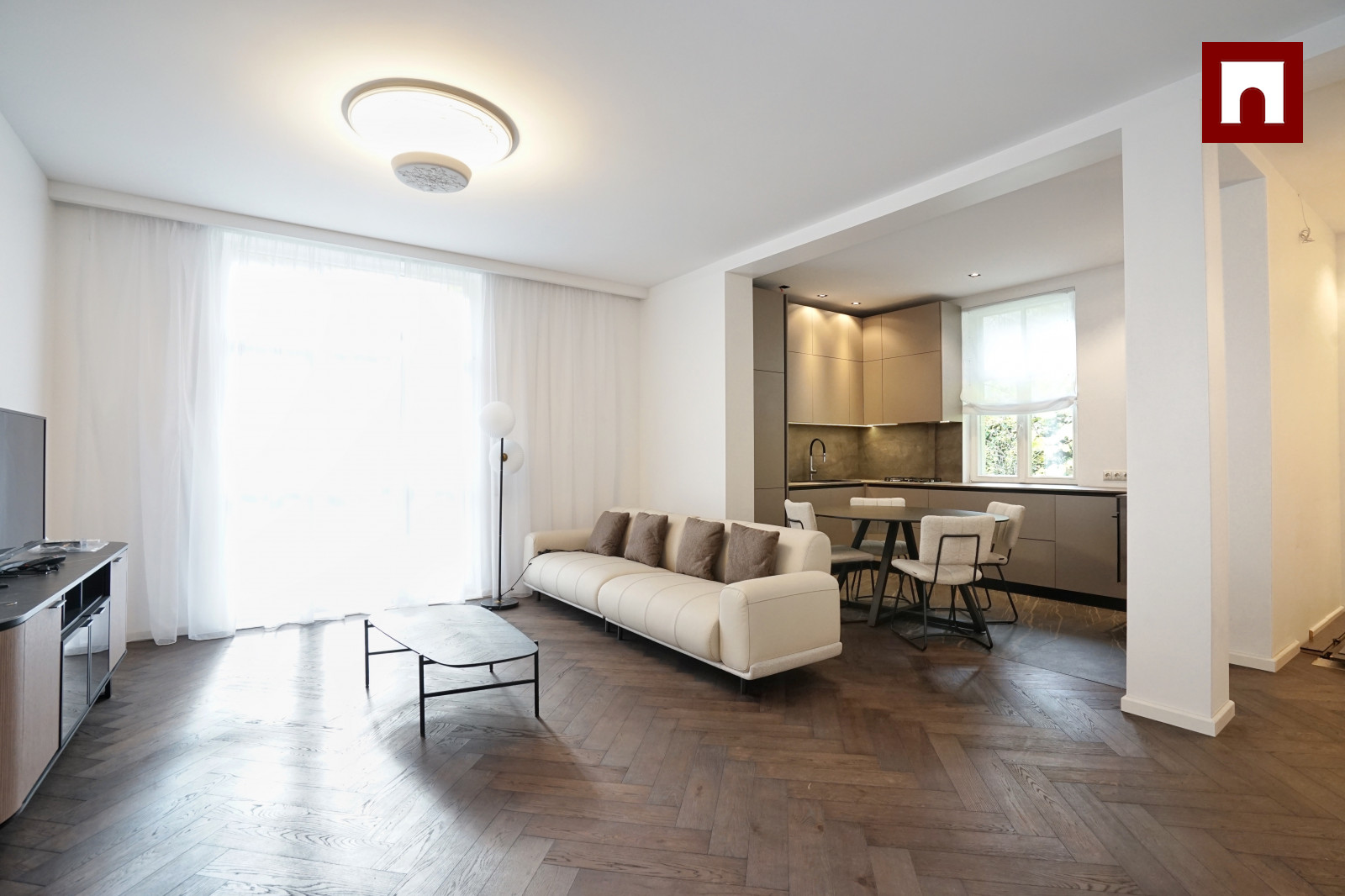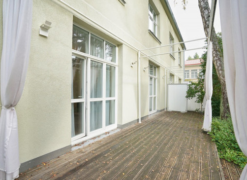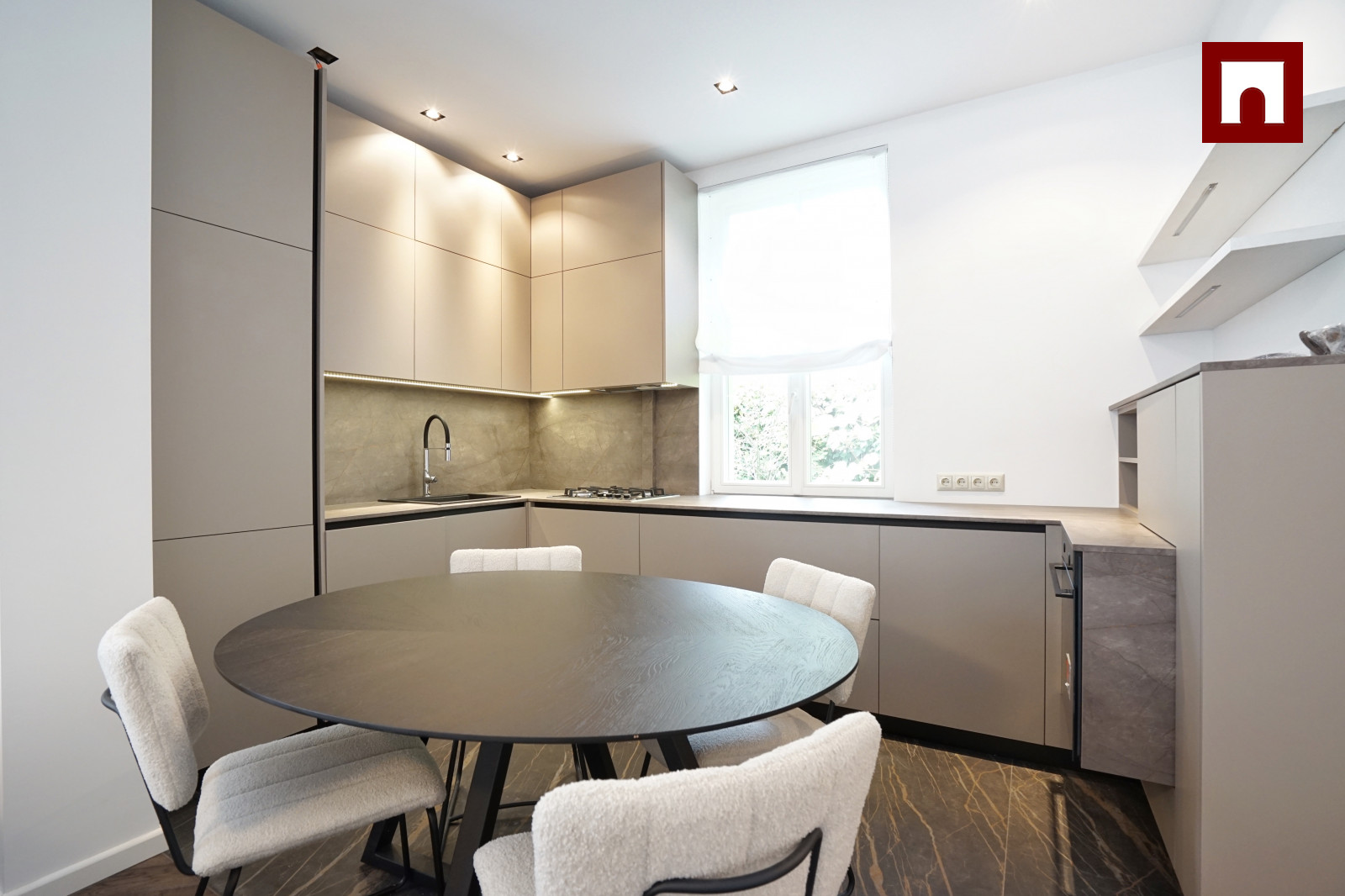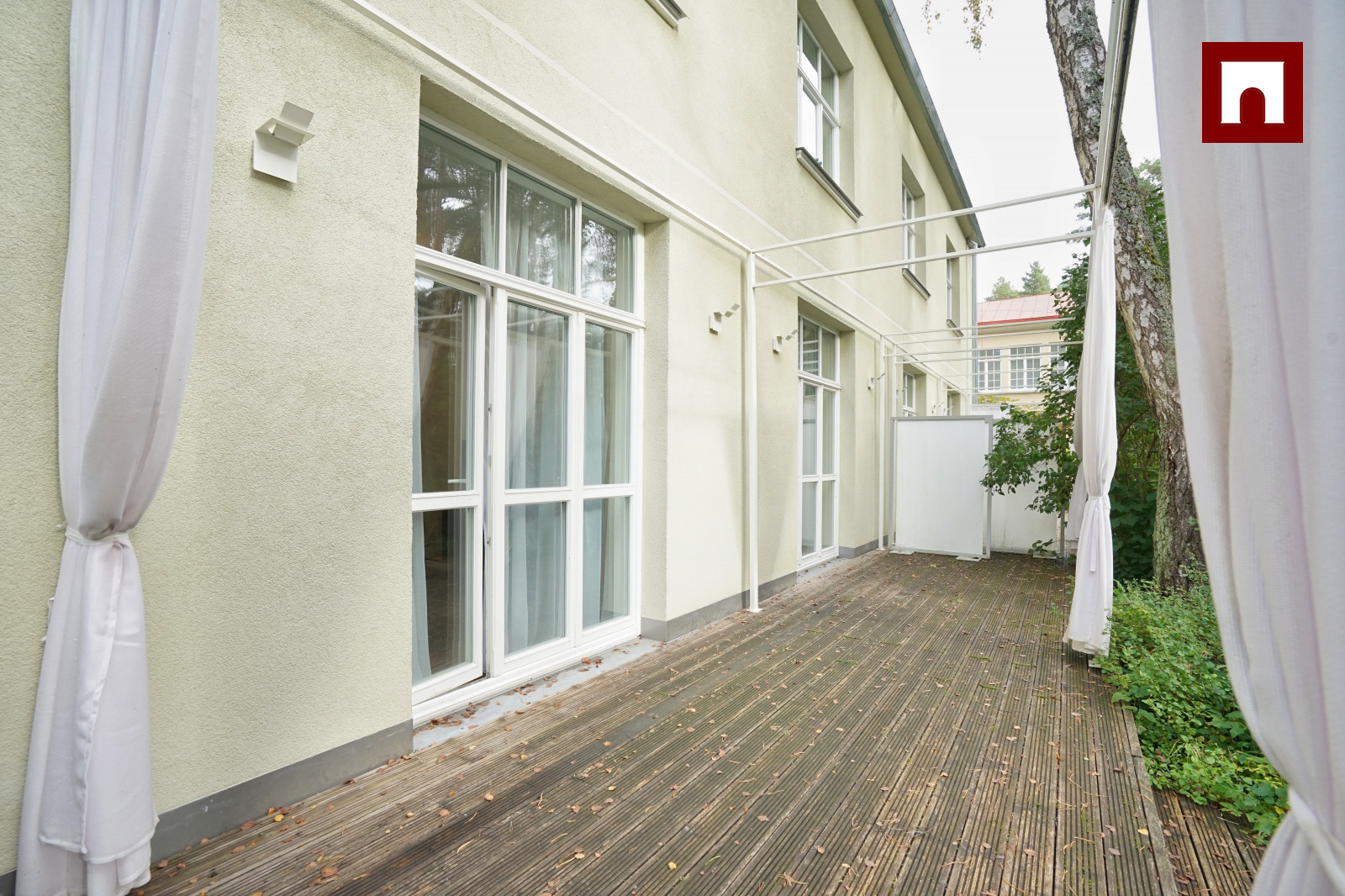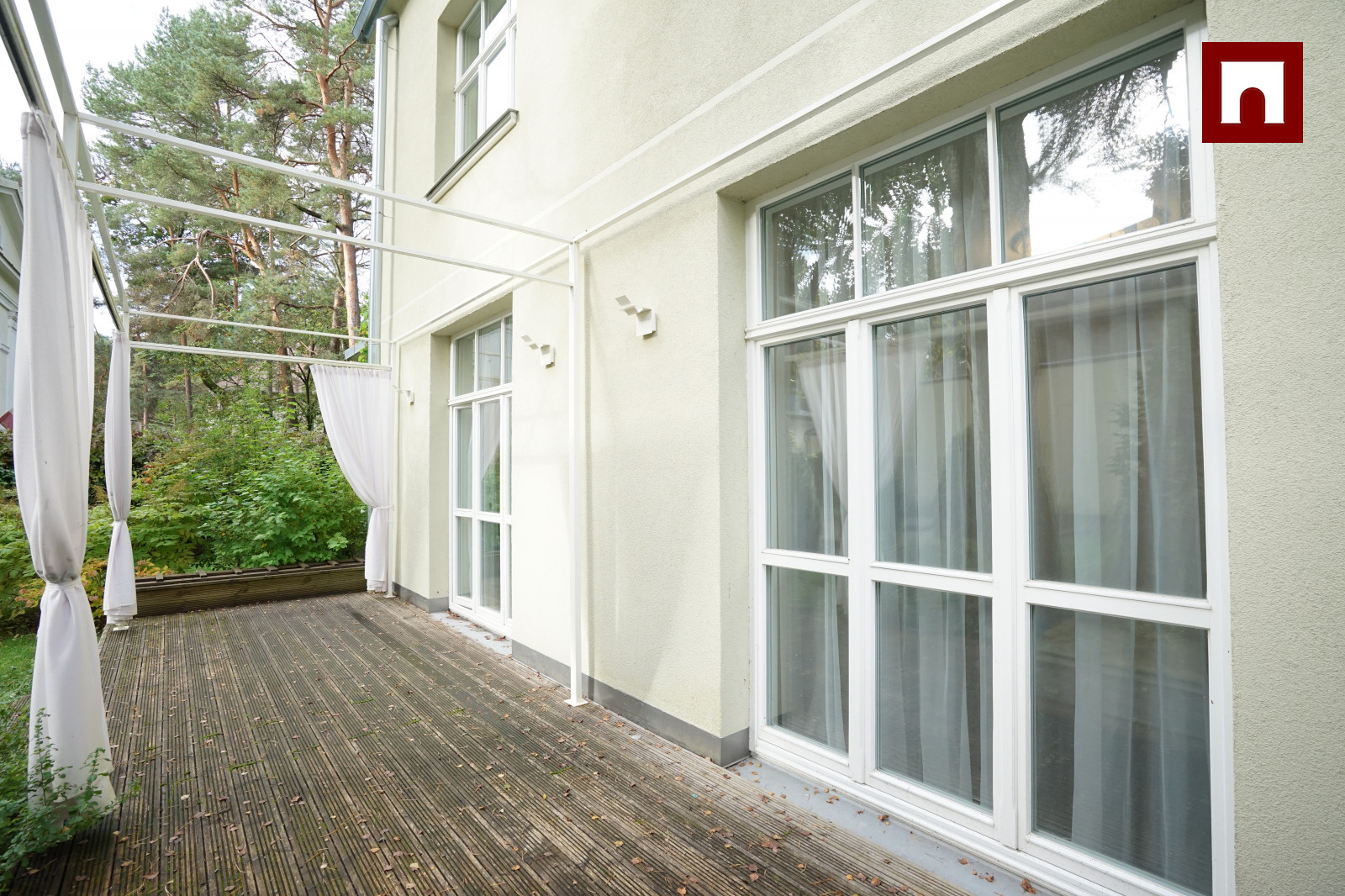 Dzīvoklis atrodas pilnībā rekonstruētā divstāvu ēkā ar tikai četriem dzīvokļiem, katram sava ieeja. No viesistabas un galvenās guļamistabas – izeja uz terasi un privātu dārzu.
