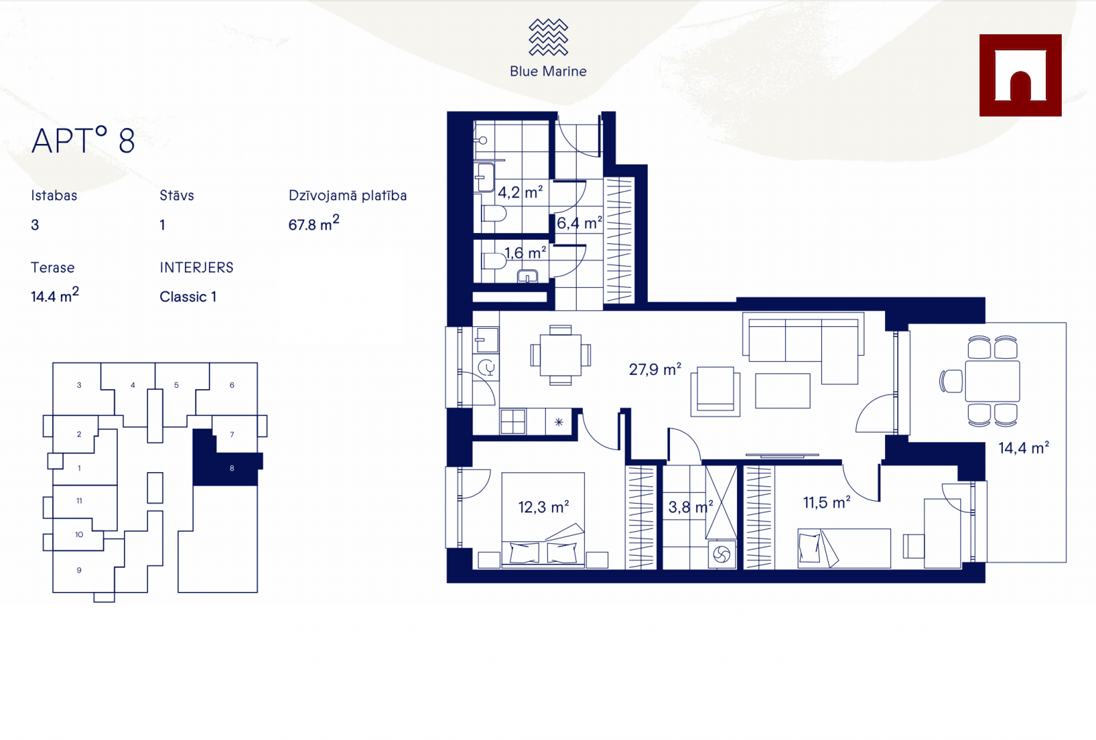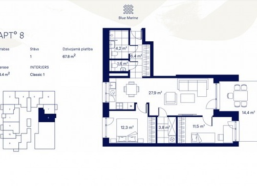 Blue Marine ir nākamā dzīvojamā ēka Klīversalas kvartālā, kas veidojas par vienotu dzīves vidi, kurā ir harmoniski apvienots vēsturiskais raksturs, mūsdienīga arhitektūra un pārdomāta teritorijas ainava. Projekta atrašanās dabas ieskautā vietā pašā Daugavas Āgenskalna līča krastā un parka tuvumā radīs īpašu mierpilnu ikdienas sajūtu.
