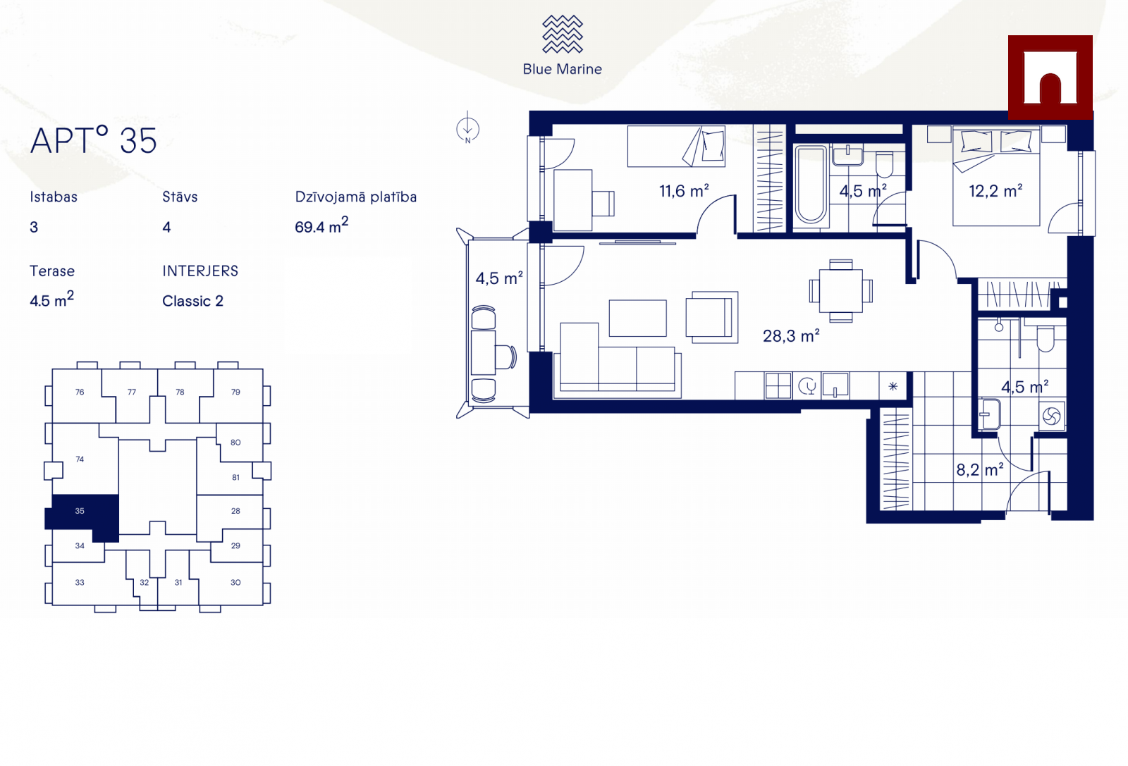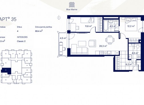 Unikālā atrašanās vieta zaļā vidē un risinājumi, kas izstrādāti, lai nodrošinātu ēkas iedzīvotājiem prestižu un ilgtspējīgu dzīves vidi, padara Blue Marine par vērtīgu ilgtermiņa ieguldījumu.
