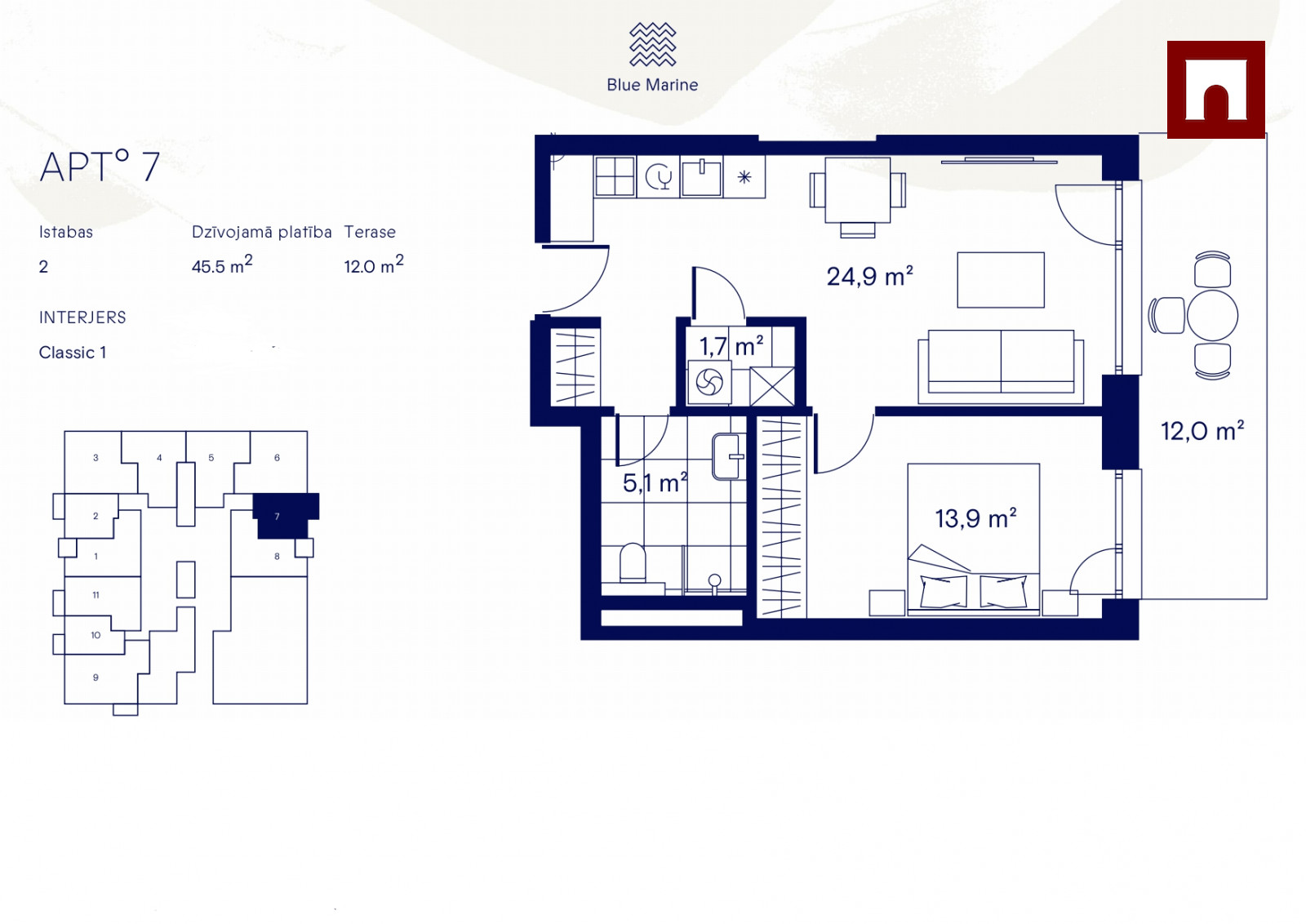 Blue Marine ir nākamā dzīvojamā ēka Klīversalas kvartālā, kas veidojas par vienotu dzīves vidi, kurā ir harmoniski apvienots vēsturiskais raksturs, mūsdienīga arhitektūra un pārdomāta teritorijas ainava. Projekta atrašanās dabas ieskautā vietā pašā Daugavas Āgenskalna līča krastā un parka tuvumā radīs īpašu mierpilnu ikdienas sajūtu.