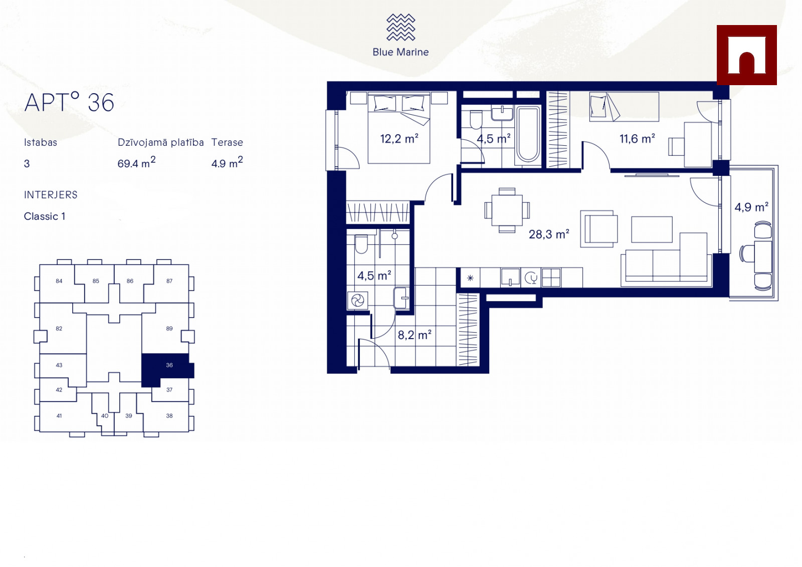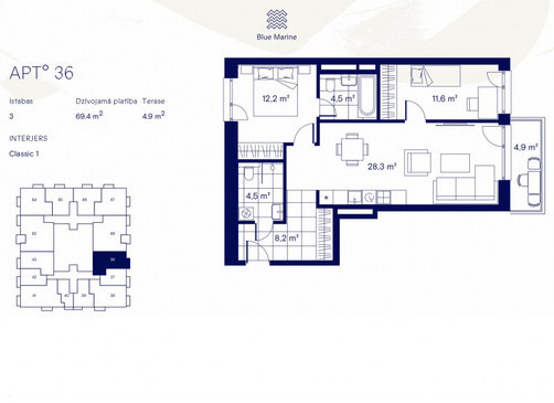 Blue Marine ir nākamā dzīvojamā ēka Klīversalas kvartālā, kas veidojas par vienotu dzīves vidi, kurā ir harmoniski apvienots vēsturiskais raksturs, mūsdienīga arhitektūra un pārdomāta teritorijas ainava. Projekta atrašanās dabas ieskautā vietā pašā Daugavas Āgenskalna līča krastā un parka tuvumā radīs īpašu mierpilnu ikdienas sajūtu.