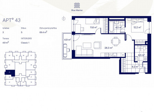 Blue Marine ir nākamā dzīvojamā ēka Klīversalas kvartālā, kas veidojas par vienotu dzīves vidi, kurā ir harmoniski apvienots vēsturiskais raksturs, mūsdienīga arhitektūra un pārdomāta teritorijas ainava. Projekta atrašanās dabas ieskautā vietā pašā Daugavas Āgenskalna līča krastā un parka tuvumā radīs īpašu mierpilnu ikdienas sajūtu.