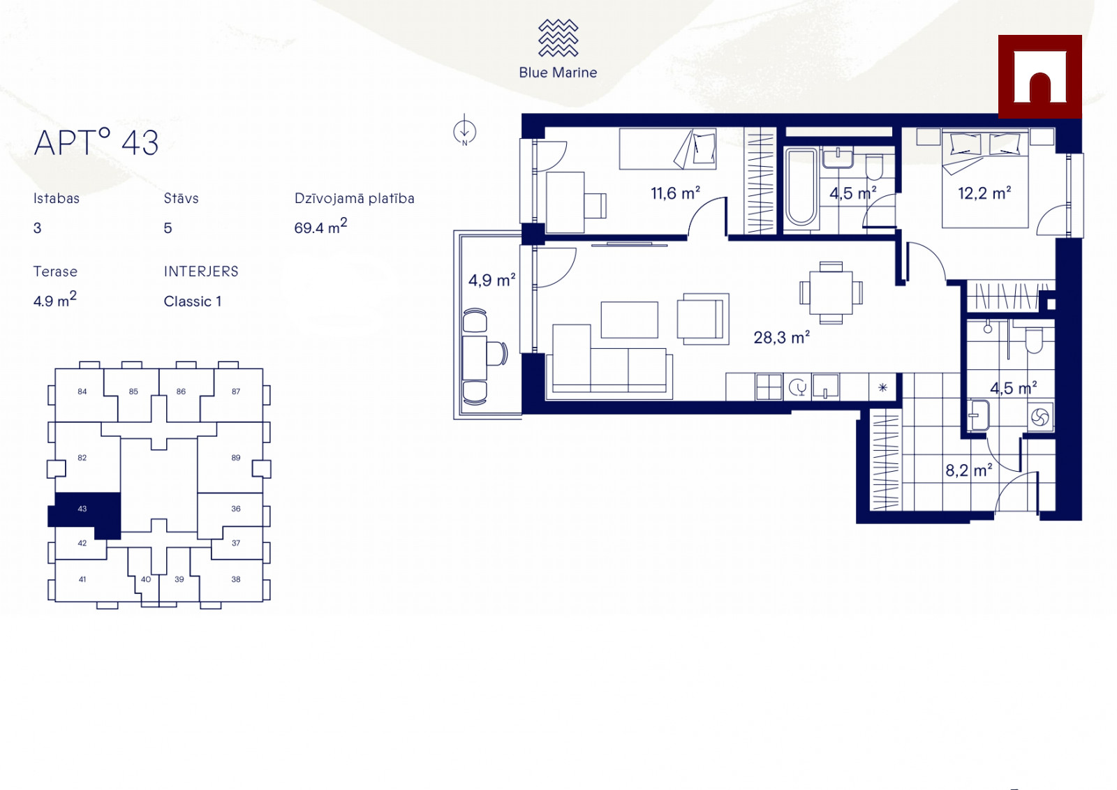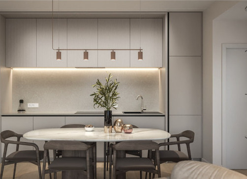 Arī daudzdzīvokļu ēkas Blue Marine interjera apdare ir izvēlēta balstoties uz sinerģiju starp dabu un pilsētu, sniedzot estētisku baudījumu un komfortablus dzīves apstākļus.