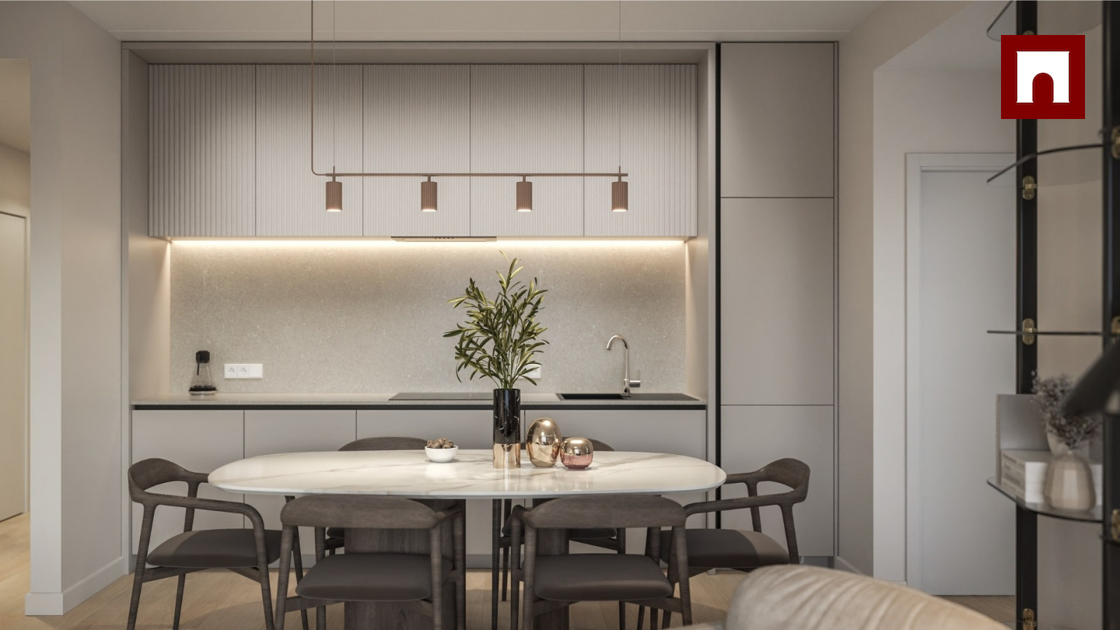 Arī daudzdzīvokļu ēkas Blue Marine interjera apdare ir izvēlēta balstoties uz sinerģiju starp dabu un pilsētu, sniedzot estētisku baudījumu un komfortablus dzīves apstākļus.