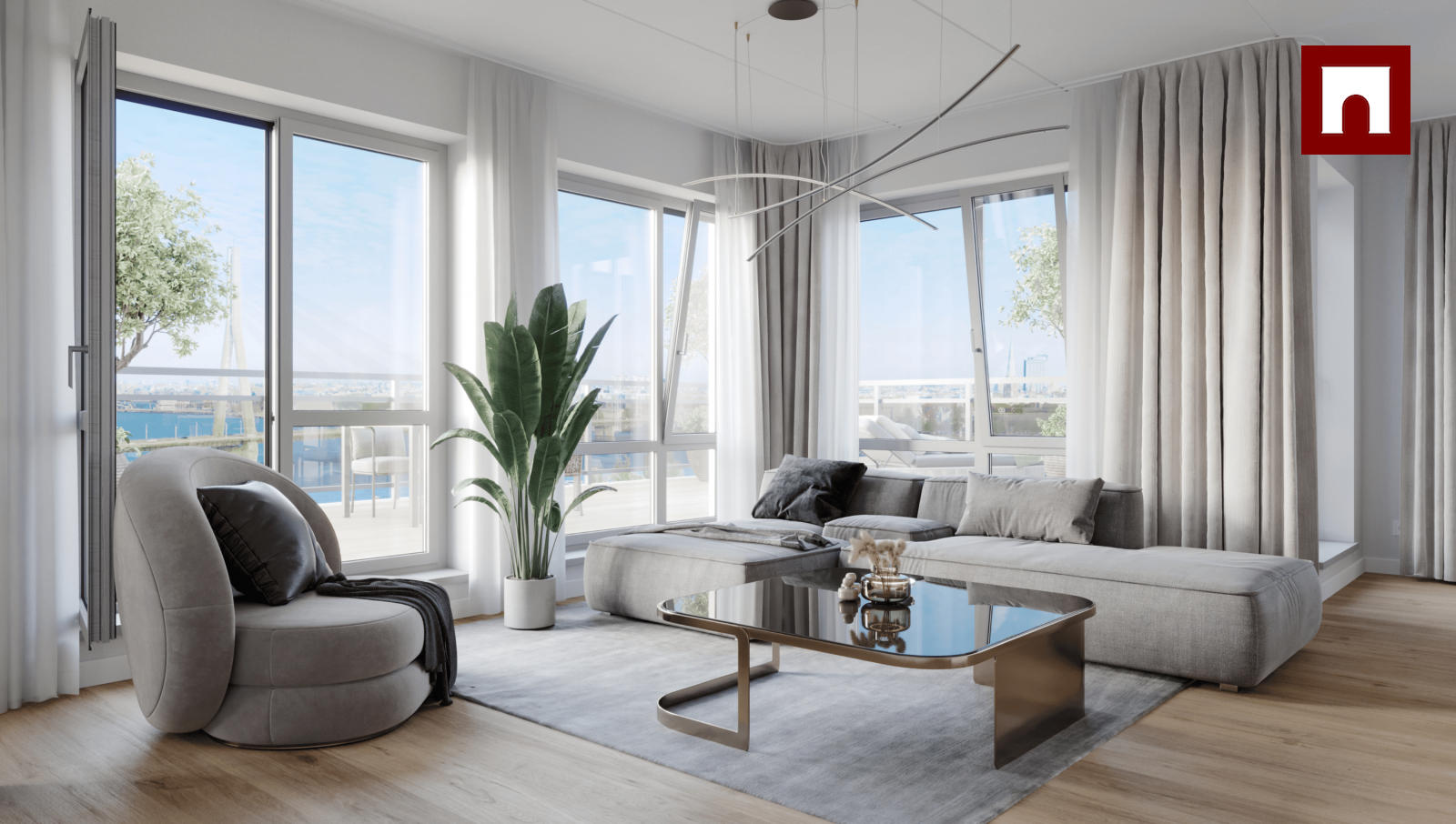 Arī daudzdzīvokļu ēkas Blue Marine interjera apdare ir izvēlēta balstoties uz sinerģiju starp dabu un pilsētu, sniedzot estētisku baudījumu un komfortablus dzīves apstākļus.