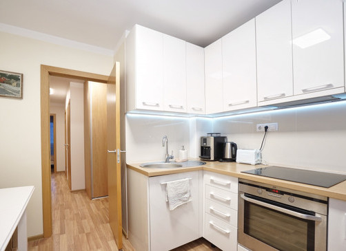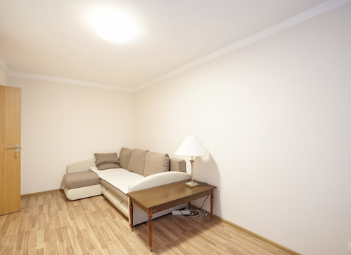 Dzīvoklis ir mēbelēts un aprīkots ar sadzīves tehniku. Pēc vienošanās iespējams daļu mēbeļu izvest vai, tieši otrādi, papildināt ar nepieciešamo.