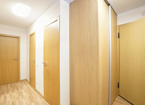 Dzīvoklim ir ērts un pārdomāts plānojums: plaša halle, divas guļamistabas, izolēta viesistaba, atsevišķa virtuve, vannas istaba un tualete. Logi vērsti uz abām mājas pusēm, nodrošinot daudz dabīgās gaismas.