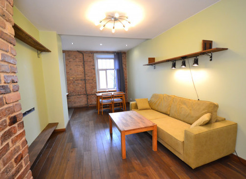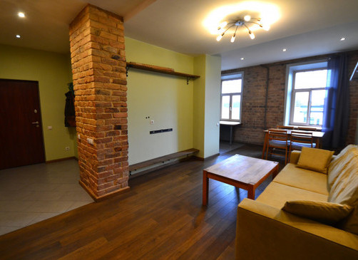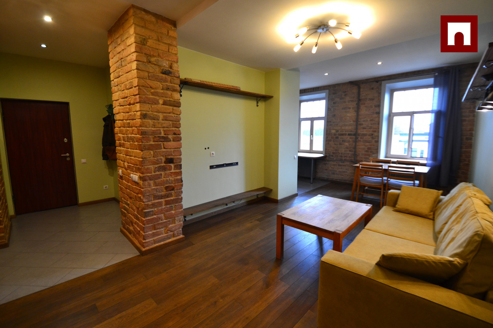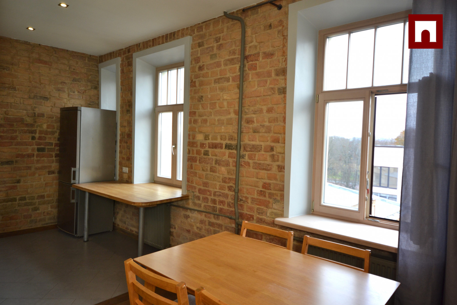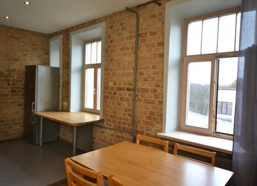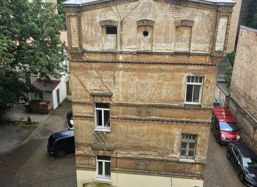 Dzīvoklis atrodas ēkas piektajā stāvā, logi vērsti gan uz pagalma, gan ielas pusēm.