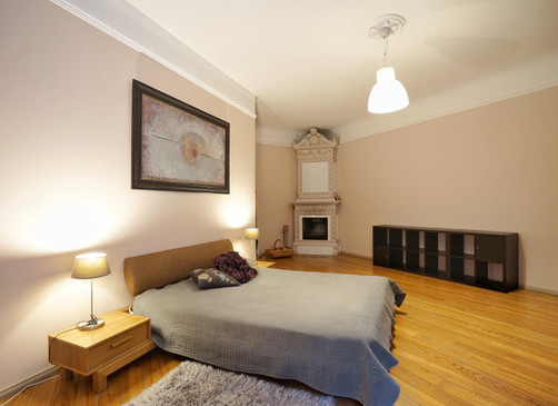 Dzīvoklim ir divas atsevišķas ieejas, kas nodrošina papildu ērtības un privātumu. Virtuve apvienota ar ēdamistabu un aprīkota ar augstas klases “Miele” sadzīves tehniku un kvalitatīvām mēbelēm. Guļamistabā ir kvalitatīvas ozolkoka mēbeles, restaurēts kamīns un televizors, radot īpaši mājīgu un izsmalcinātu atmosfēru.