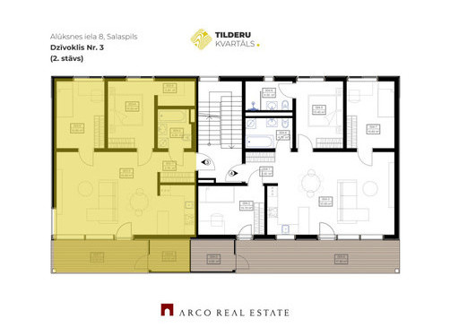 Salaspilī topošajā ciematā Tilderu kvartāls augstas kvalitātes tipveida koka paneļu ēkā, kas atrodas Alūksnes ielā 8, iegādei tiek piedāvāts trīs istabu dzīvoklis 79,9 kvadrātmetru platībā. Mājoklis atrodas jaunbūves otrajā stāvā, un tā funkcionālais plānojums veidots, ievērojot kvalitātīvas dzīvojamās vides izveides principus. Šī sešu dzīvokļu ēka ir trešā jaunbūve, ko piedāvā Tilderu kvartāla attīstītājs.