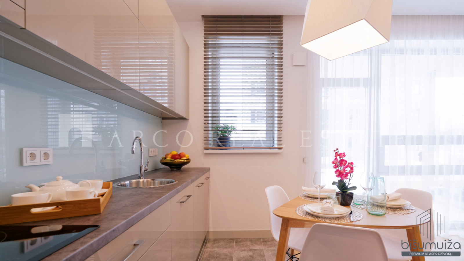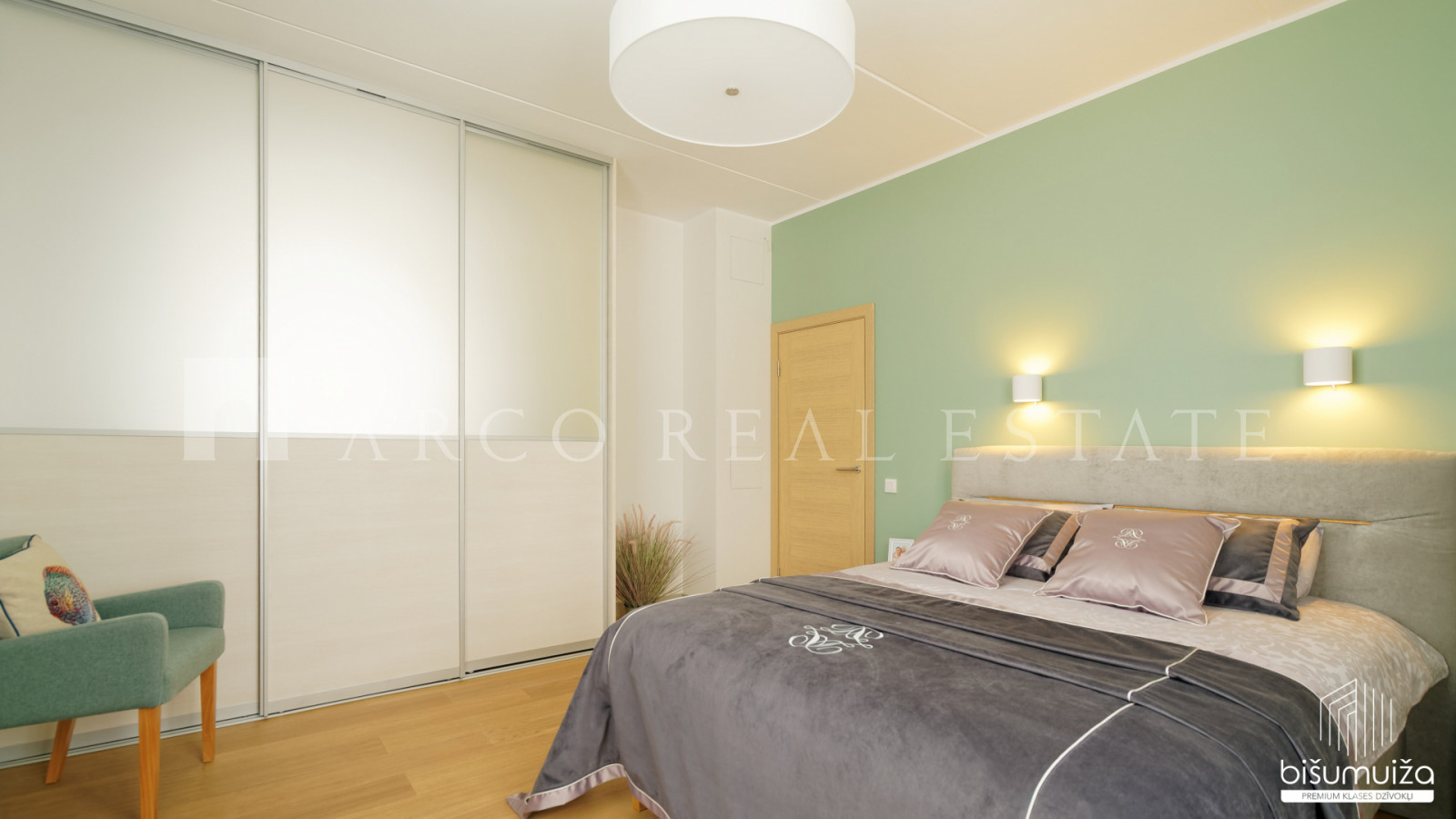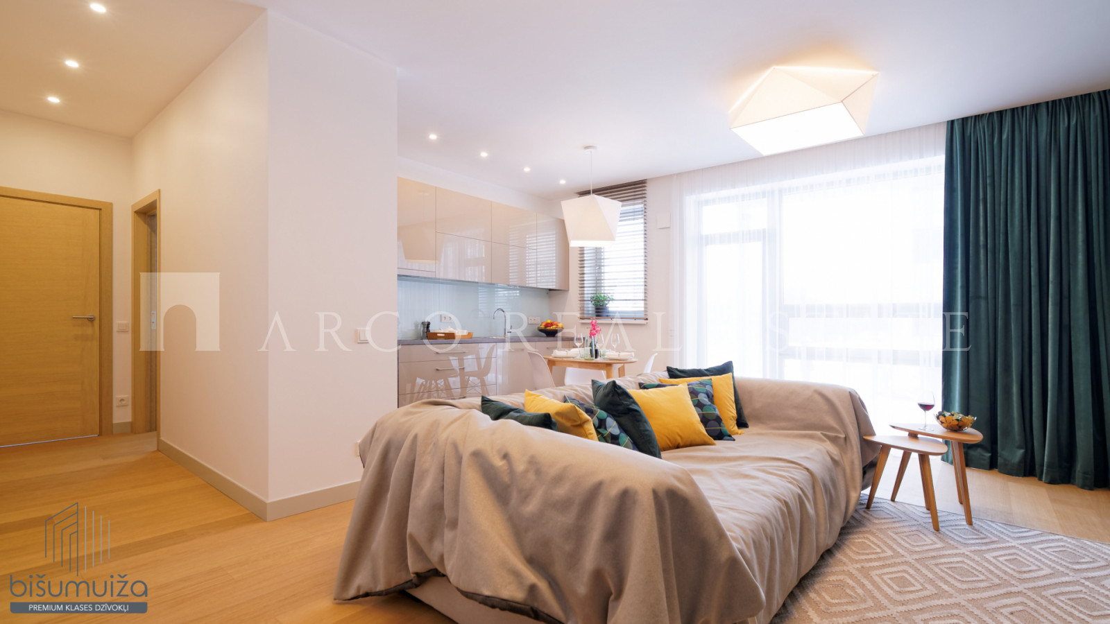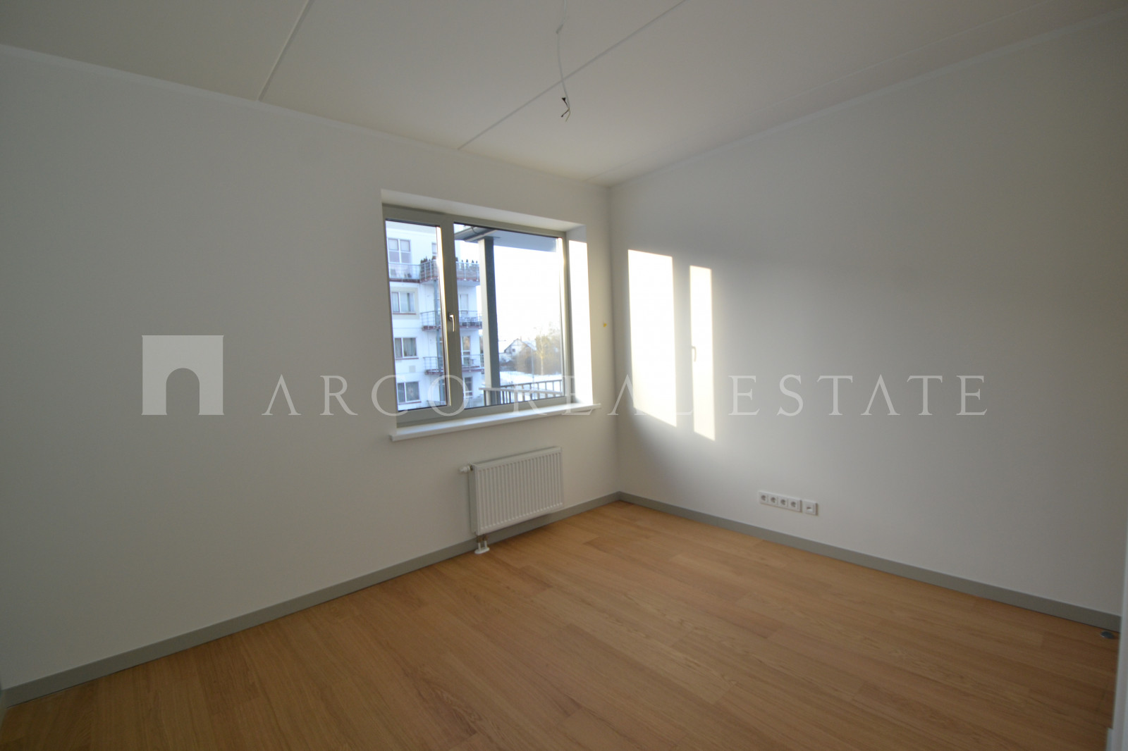 Dzīvoklis tiek piedāvāts ar pabeigtu iekšējo apdari, kurā izmantoti augstvērtīgi un mūsdienīgi būvmateriāli. Jaunā projekta iekštelpās ir funkcionāli ērts plānojums. Dzīvoklis ir gaišs un mājīgs, to nodrošina plašie logi un daudzdzīvokļu projektiem neraksturīgi augsti griesti.