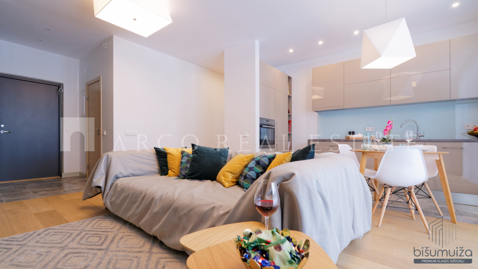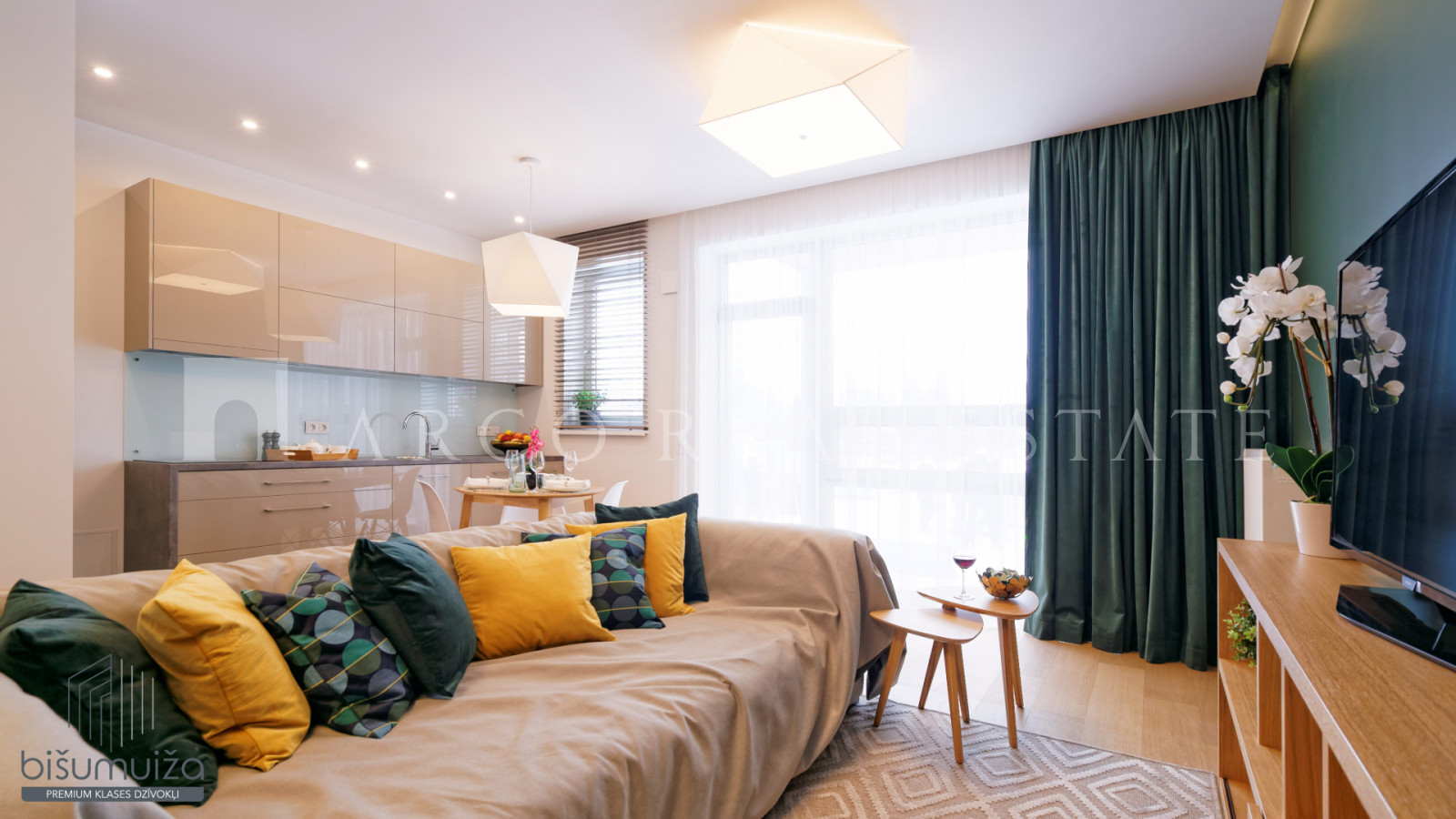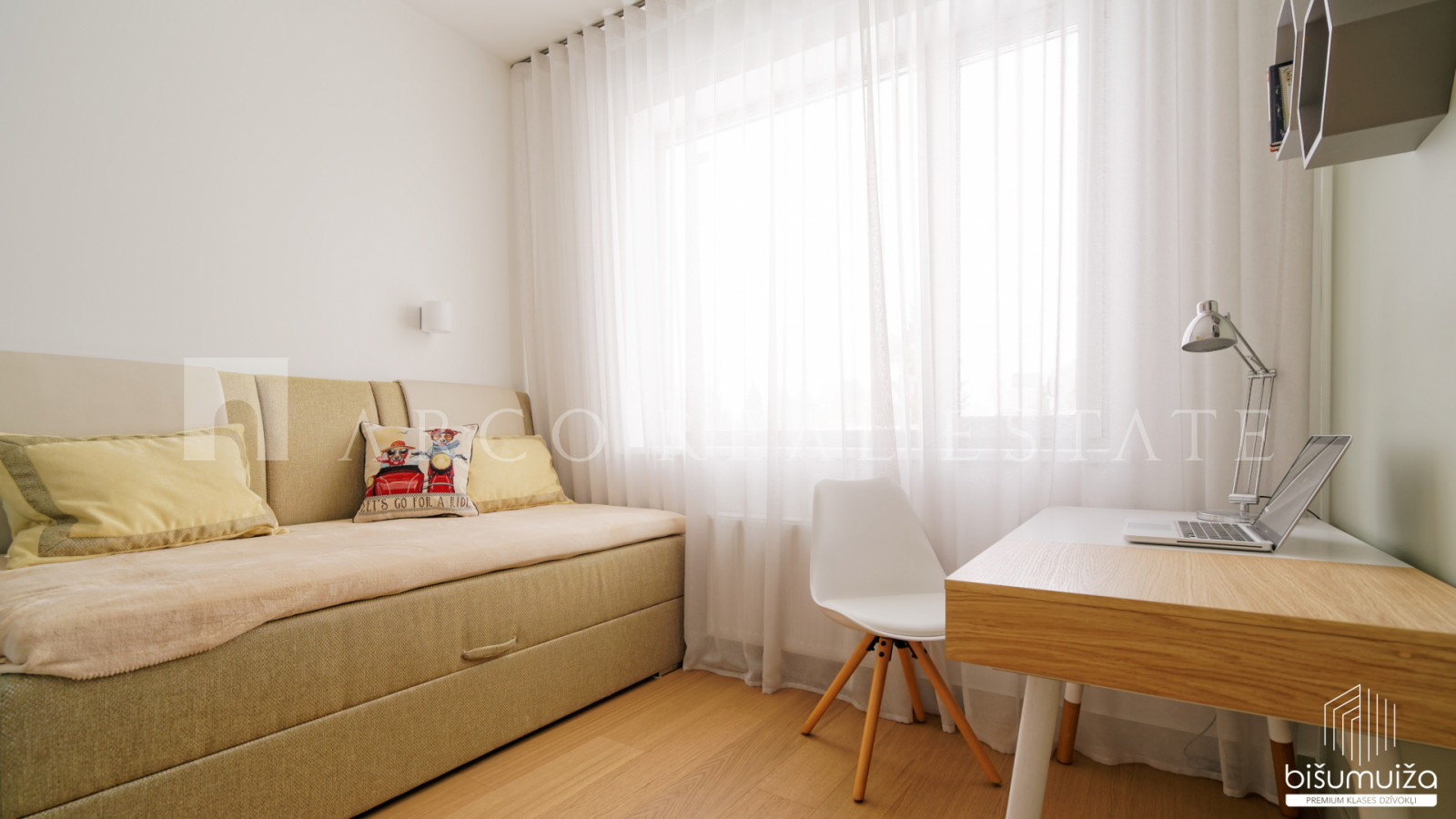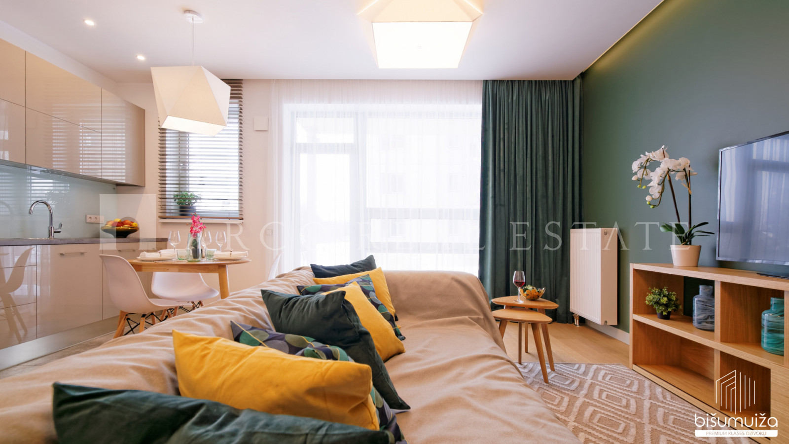 Dzīvoklis tiek piedāvāts ar pabeigtu iekšējo apdari, kurā izmantoti augstvērtīgi un mūsdienīgi būvmateriāli. Jaunā projekta iekštelpās ir funkcionāli ērts plānojums. Dzīvoklis ir gaišs un mājīgs, to nodrošina plašie logi un daudzdzīvokļu projektiem neraksturīgi augsti griesti.