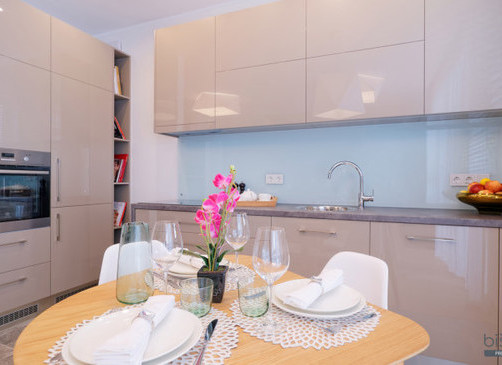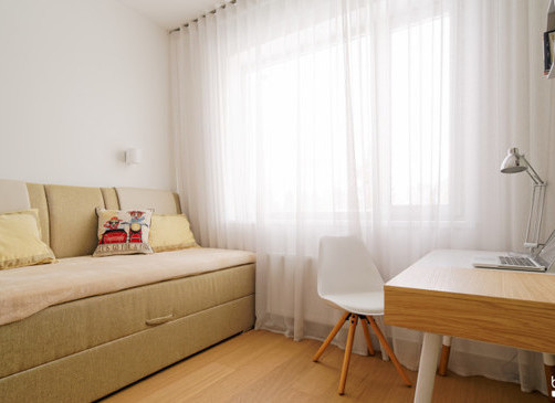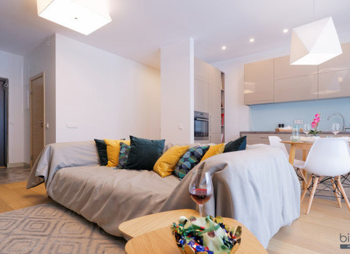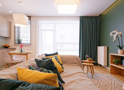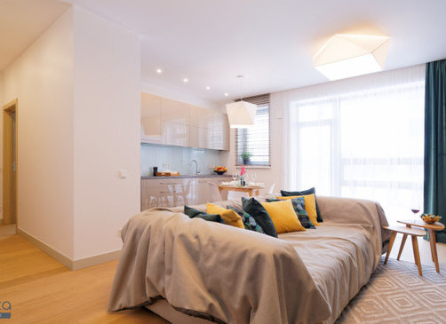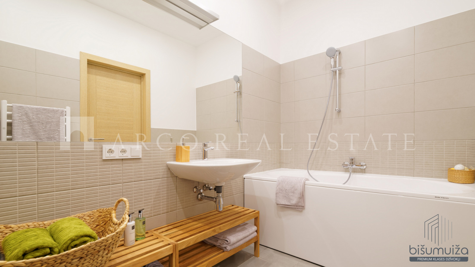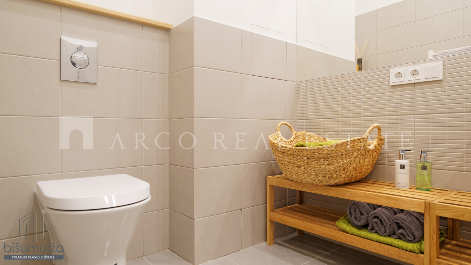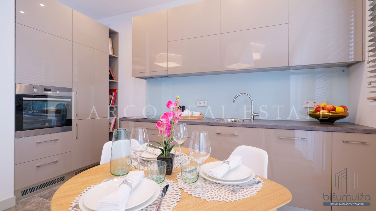Dzīvoklis tiek piedāvāts ar pabeigtu iekšējo apdari, kurā izmantoti augstvērtīgi un mūsdienīgi būvmateriāli. Jaunā projekta iekštelpās ir funkcionāli ērts plānojums. Dzīvoklis ir gaišs un mājīgs, to nodrošina plašie logi un daudzdzīvokļu projektiem neraksturīgi augsti griesti.