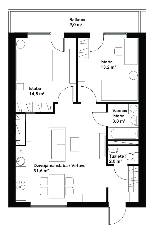 Būtiska dzīvokļa priekšrocība ir lielais balkons, kura platums pārsniedz 7 m. Baudīt ikrīta kafiju, īstenot sapni par dārzniecību, sarīkot vakariņas ģimenei vai draugiem svaigā gaisā, izgreznot balkonu ar svētku dekoriem – to visu ļaus īstenot balkona platība.