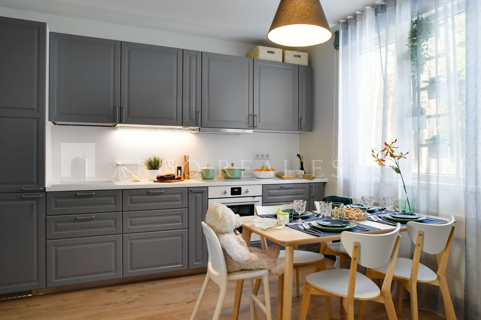 Dzīvokļu interjers ir pārdomāts visās detaļās: izvēloties apdares materiālus un krāsas, ir domāts gan par to praktisko lietošanu, gan estētisko pievilcību. Telpas veidotas gaišas un mājīgas. Pateicoties interjera dizaina risinājumiem, dzīvoklī izveidota mūsdienīgu vide, ko var papildināt ar mēbelēm, aizkariem un citiem elementiem, radot tieši Jums atbilstošu dzīves telpu jebkurā stilā.
