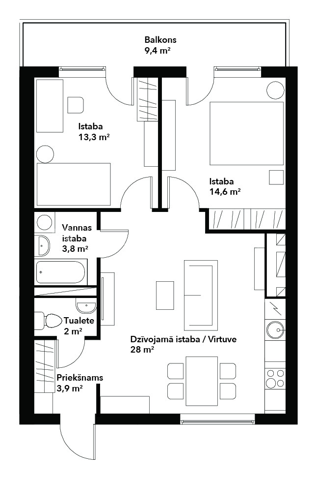 Būtiska dzīvokļa priekšrocība ir lielais balkons, kura platums pārsniedz 7 m. Baudīt ikrīta kafiju, īstenot sapni par dārzniecību, sarīkot vakariņas ģimenei vai draugiem svaigā gaisā, izgreznot balkonu ar svētku dekoriem – to visu ļaus īstenot balkona platība.