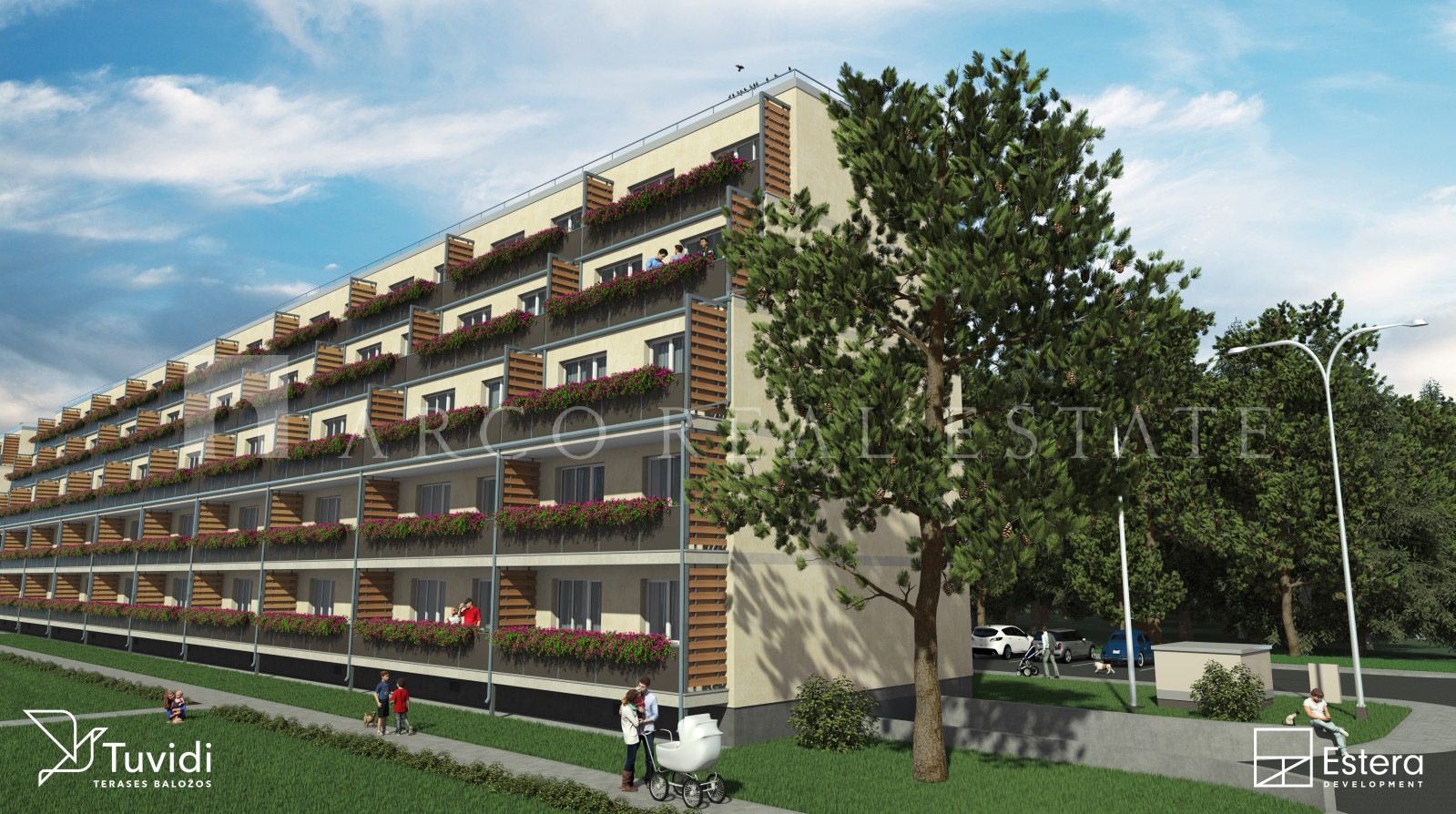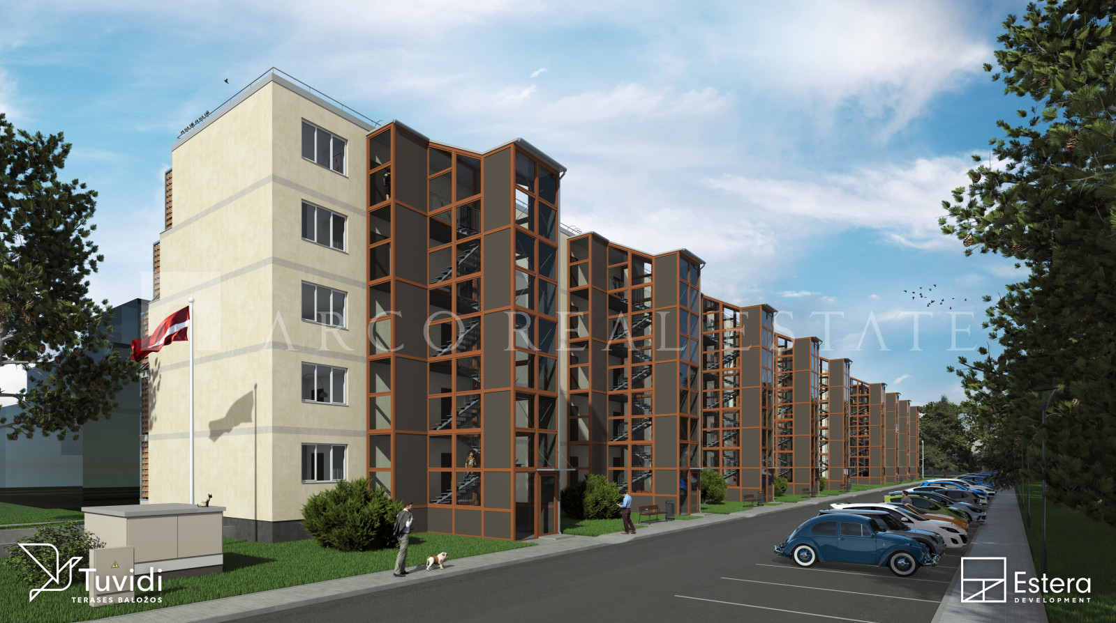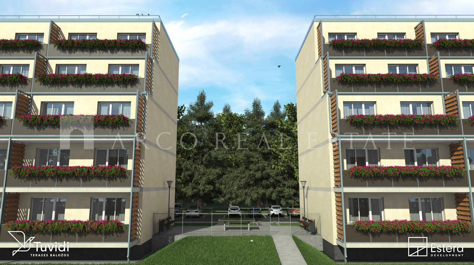 Jaunajā daudzdzīvokļu projektā TUVIDI, kas atrodas Skolas ielā 16, Baložos, iegādei tiek piedāvāts mūsdienīgs 75 m² plašs trīsistabu dzīvoklis ar pilnu iekšējo apdari. Tā platībā ietilpst 9.4 m² liels balkons. Mājoklis atrodas piecstāvu ēkas 3. stāvā. Dzīvokļa cena ir 90 800 EUR.