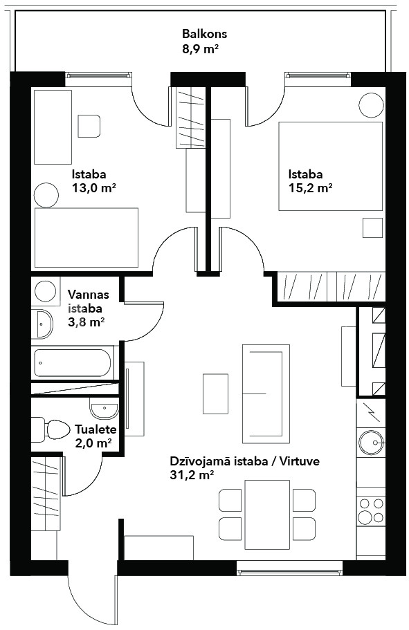 Būtiska dzīvokļa priekšrocība ir lielais balkons, kura platums pārsniedz 7 m. Baudīt ikrīta kafiju, īstenot sapni par dārzniecību, sarīkot vakariņas ģimenei vai draugiem svaigā gaisā, izgreznot balkonu ar svētku dekoriem – to visu ļaus īstenot balkona platība.