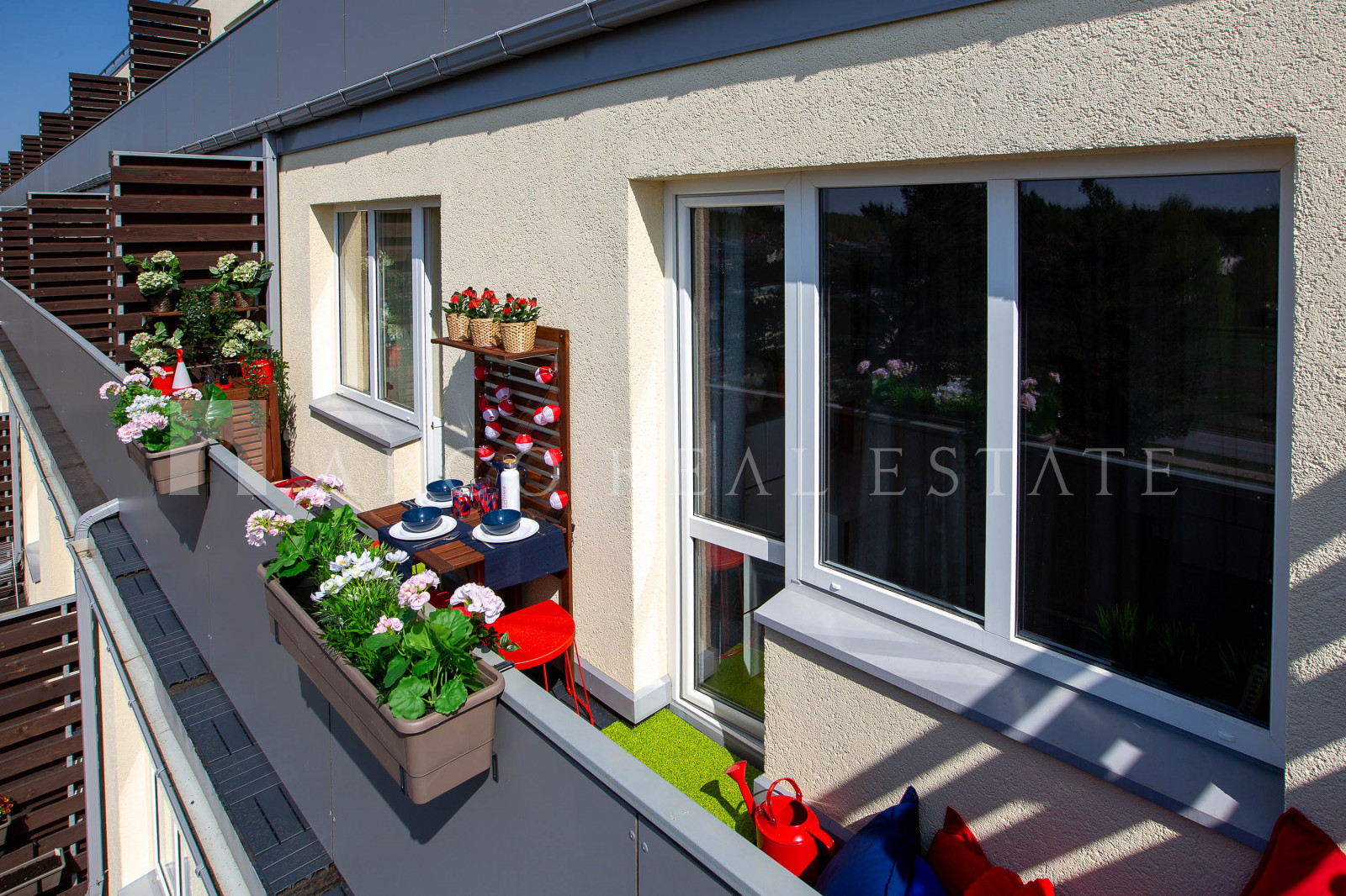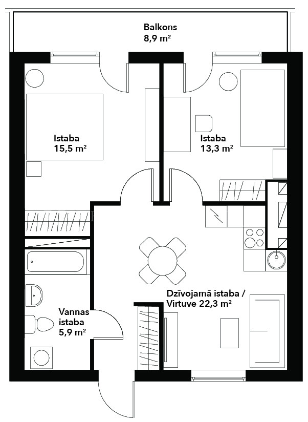 Būtiska dzīvokļa priekšrocība ir lielais balkons, kura platums pārsniedz 7 m. Baudīt ikrīta kafiju, īstenot sapni par dārzniecību, sarīkot vakariņas ģimenei vai draugiem svaigā gaisā, izgreznot balkonu ar svētku dekoriem – to visu ļaus īstenot balkona platība.