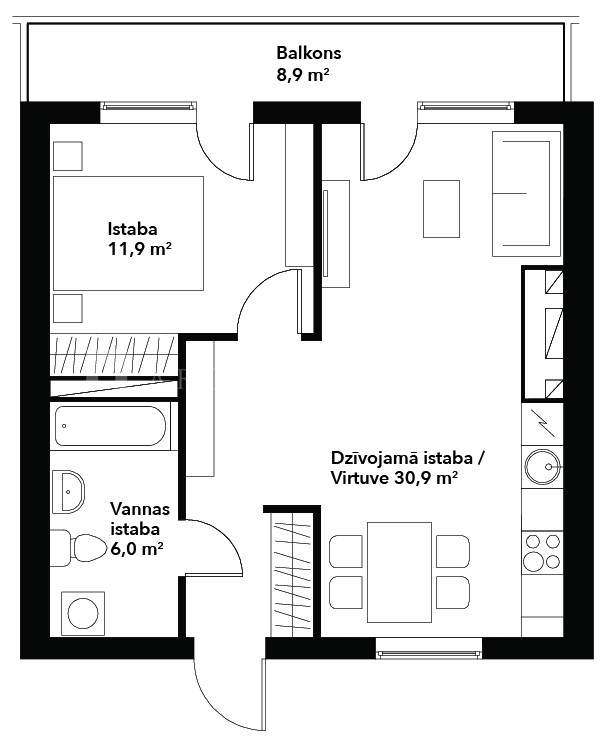 Būtiska dzīvokļa priekšrocība ir lielais balkons, kura platums pārsniedz 7 m. Baudīt ikrīta kafiju, īstenot sapni par dārzniecību, sarīkot vakariņas ģimenei vai draugiem svaigā gaisā, izgreznot balkonu ar svētku dekoriem – to visu ļaus īstenot balkona platība.