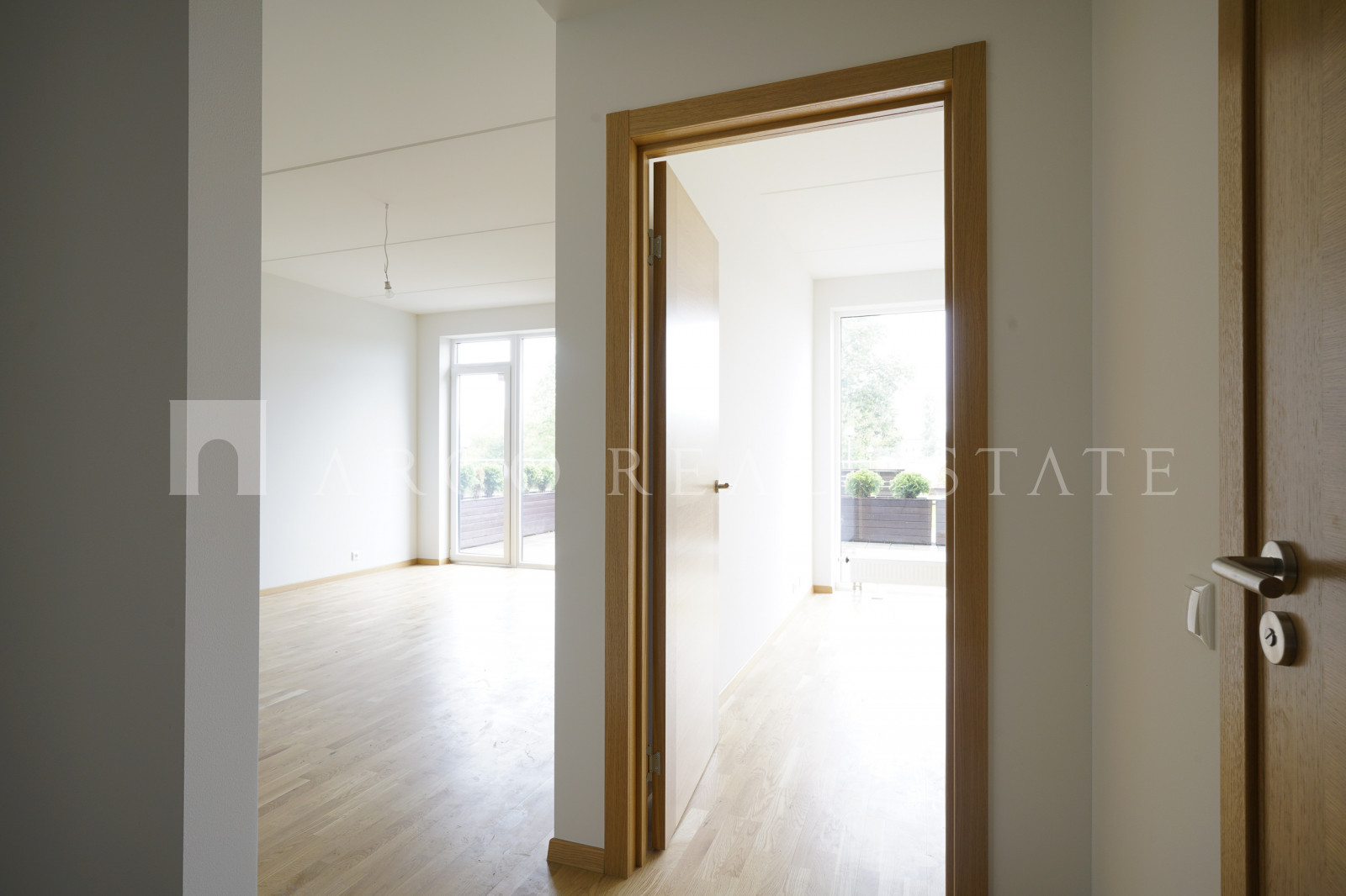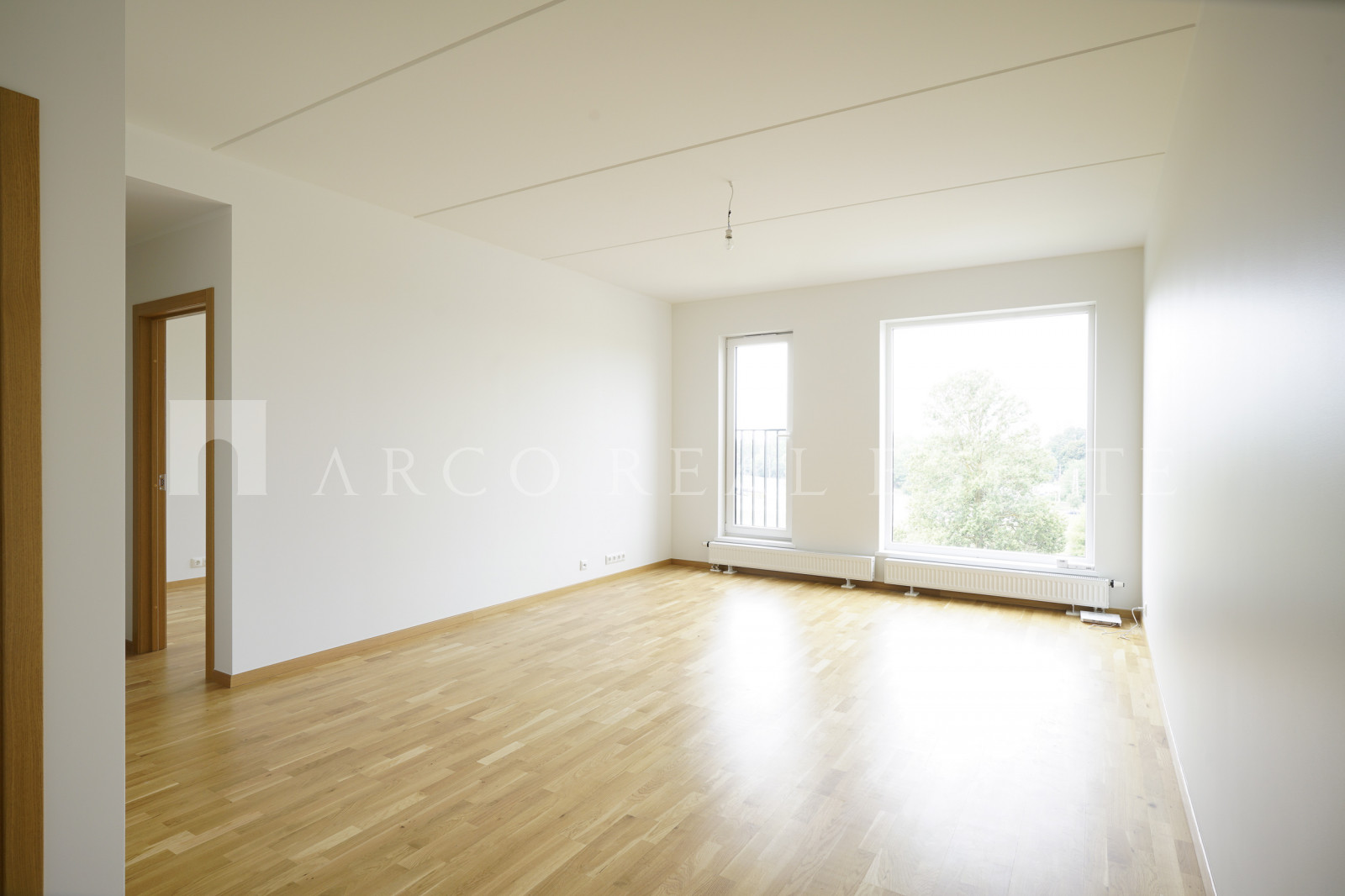 Dzīvoklis ar pilnu iekšējo apdari – 3 istabu dzīvoklis (53,8 m2), izvietots 1.stāvā 6 stāvu mājā. Dzīvokļu cenas norādītas ar gala apdari: pilnībā aprīkots sanmezgls, lieli fasādes logi, dzelzs durvis, izvadi interneta, televīzijas un apsardzes pieslēgšanai. Lieliska skaņas izolācija. Slēdzama kāpņu telpa, lifts, velosipēdu novietne. Papildus iespējams iegādāties vietu automašīnai un uzglabāšanas telpas pazemes stāvā. Mājas teritorija ir labiekārtota, ar gājēju celiņiem, soliņiem un bērnu rotaļu laukumu.
