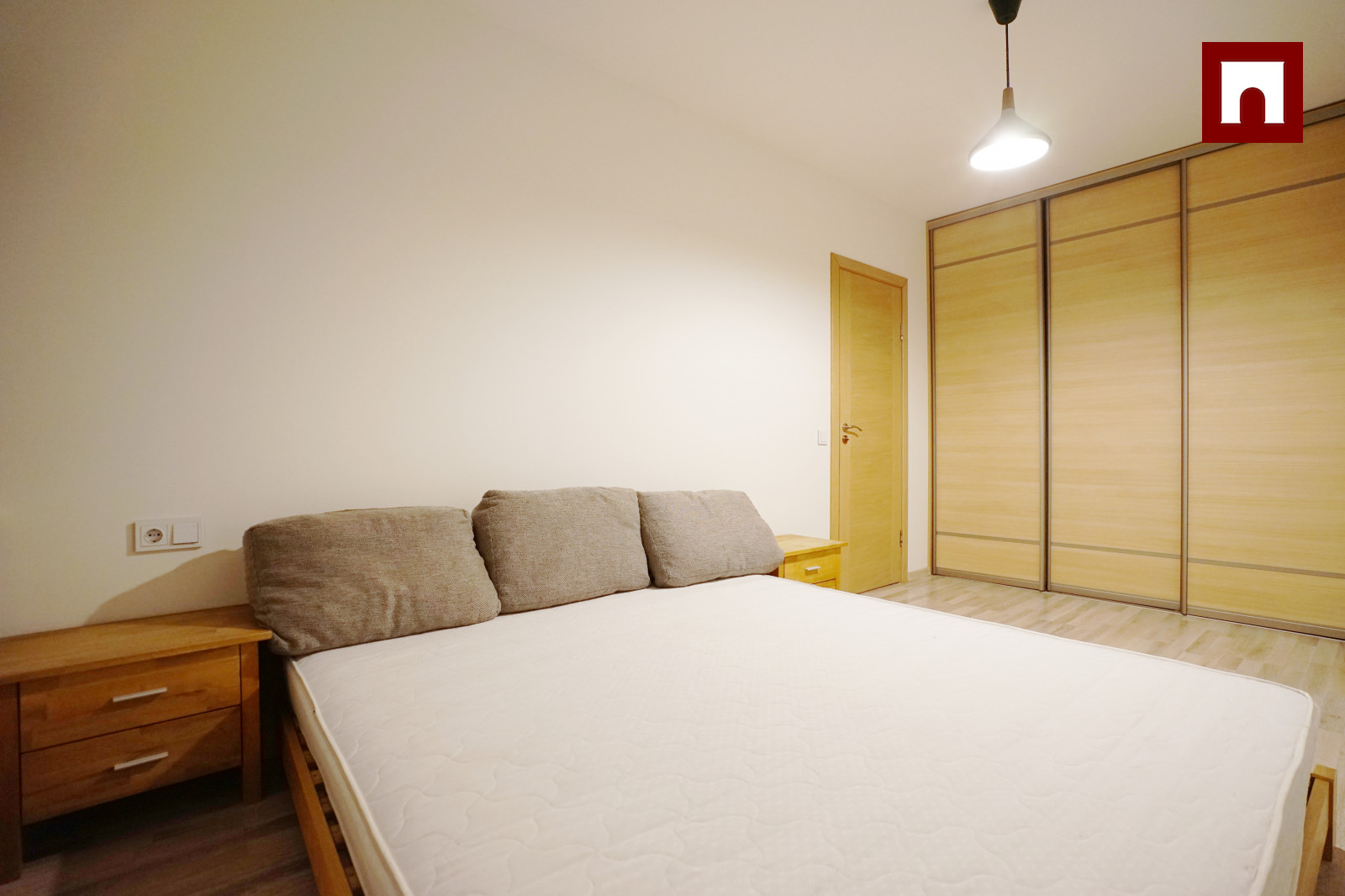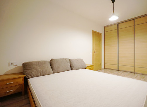 ⁃ Ietilpīgs drēbju skapis ar bīdamām durvīm.