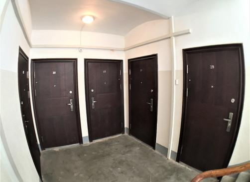 ⁃ Tīra izremontēta kāpņu telpa ar elektronisko kodu atslēgu un individuālu kodu. Kaimiņi - pārsvarā jauni īpašnieki, ģimenes.