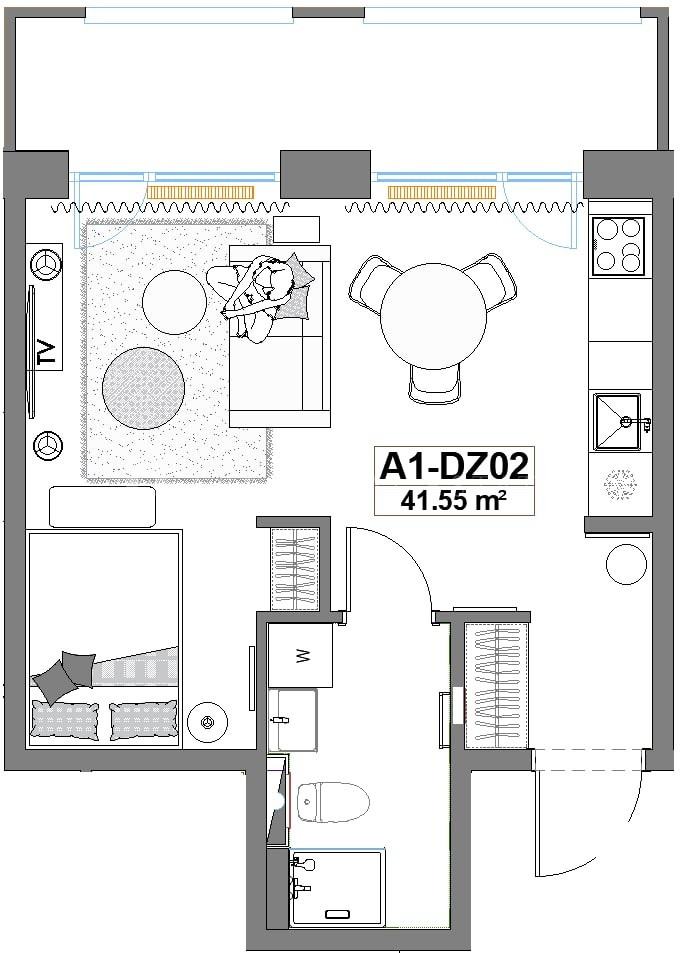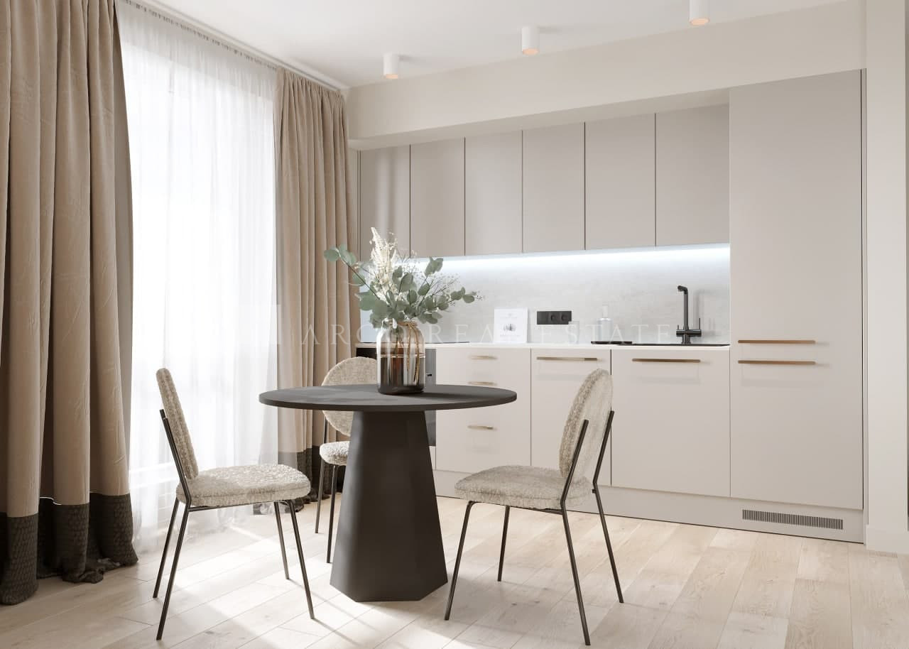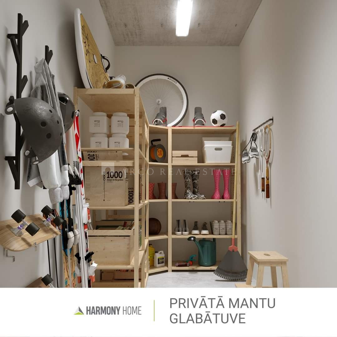 Dzīvoklim ir plaši panorāmas skata logi. Lodžija veidota kā dzīvojamās telpas paplašinājums, tai ir atverams panorāmas skata stiklojums no grīdas līdz griestiem, apgaismojums un rozete. Tāda lodžija ir izmantojama visu gadu. Dzīvoklis tiek pārdots ar pabeigtu apdari un kvalitatīvu santehniku. Mājokļa cenā iekļauta plaša 5 kvm palīgtelpa pagrabstāvā. Katram mājas iedzīvotājam ir iespēja izmantot plašu koplietošanas telpu velosipēdu un bērnu ratiņu glabāšanai.