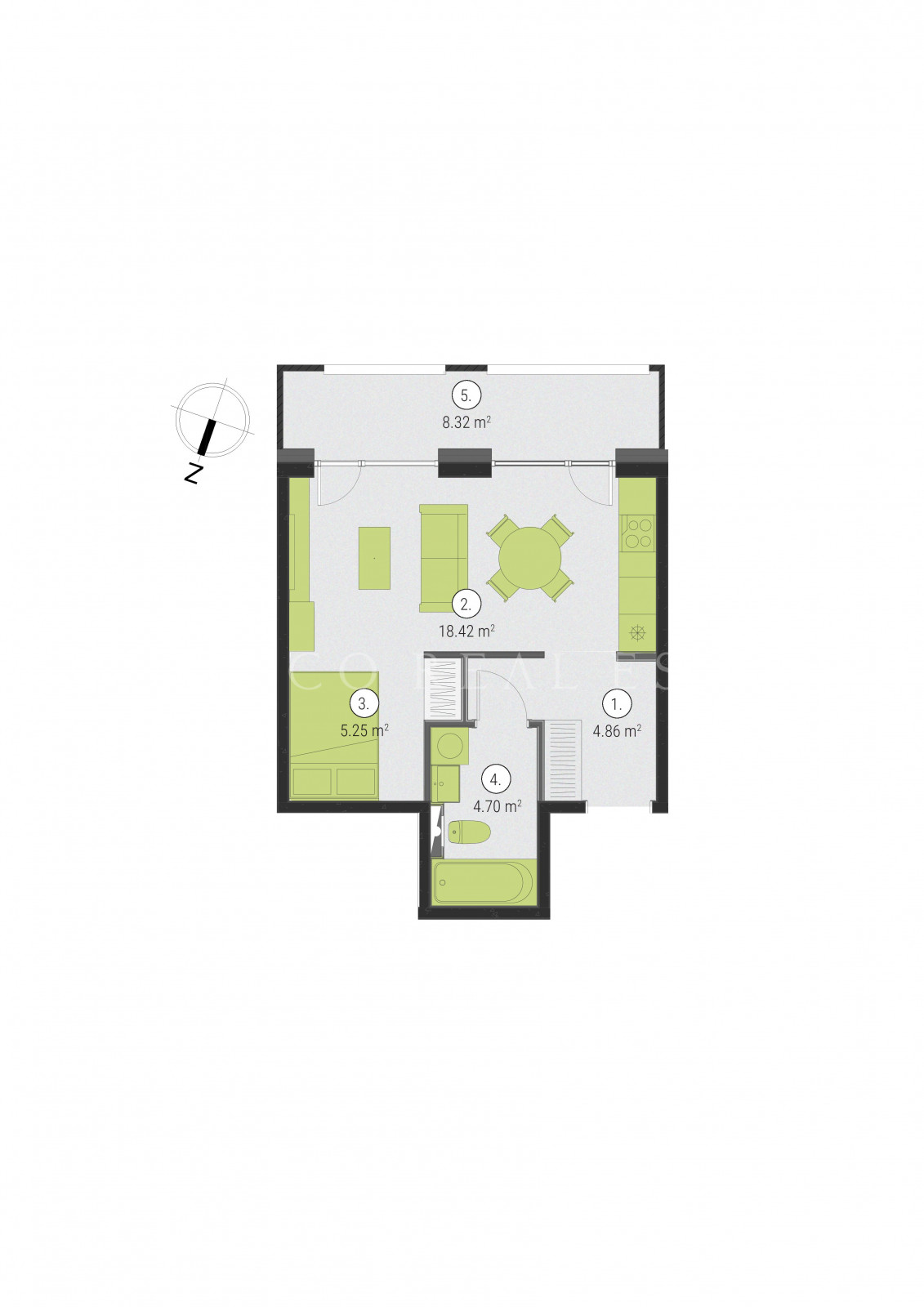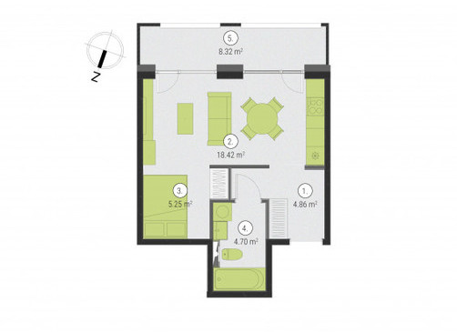 Piedāvājam iegādei 1-istabu dzīvokli, 41,54 kv.m. ēkas 3 stāvā Rīgā, Ķegumā ielā 39, jaunajā projektā “Harmony Home Teika”.