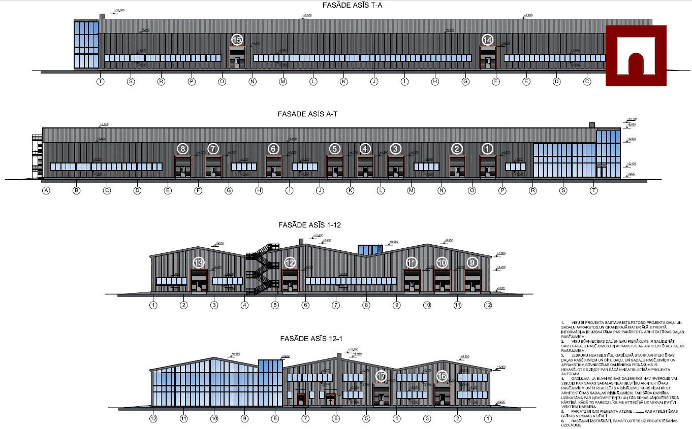Būvvaldē saskaņots projekts un izņemta būvatļauja uz ražošanas un noliktavu ēku būvniecību ar apbūves laukumu 7261.2 m2, kopējo platību 7565.8 m2, būvtilpums 65400m3, augstumu 10.2 m, virszemes stāvu skaits 2.