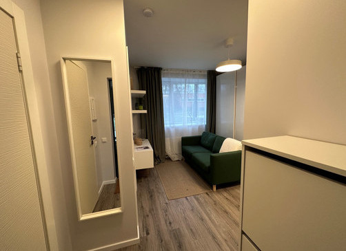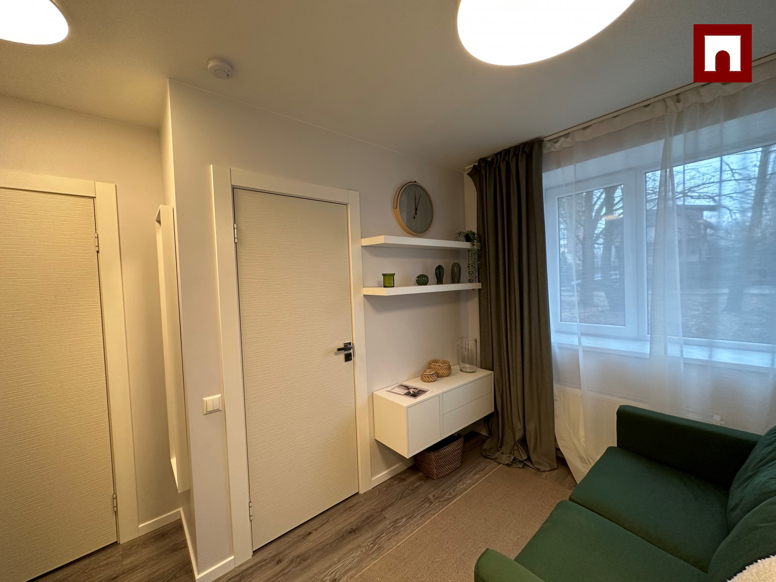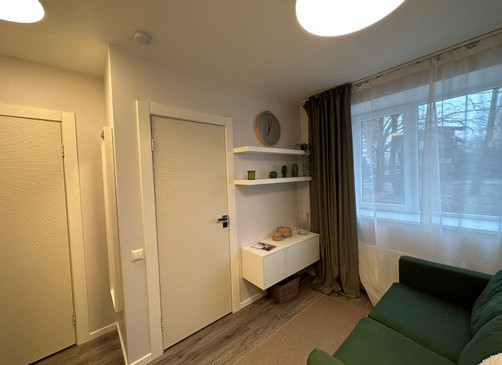 Вблизи озера Кишэзерс, в районе, окруженном зеленью, в районе Межапарка, предлагается к продаже компактная, уютная квартира в недавно реновированном кирпичном доме в проекте “Ezera SOLO “, построенном в 1970 году. В доме произведена полная реновация дома, установлены три газовых котла, отопление регулируемое и автономное, просторная территория огорожена. В доме три подъезда и есть возможность выбора, на какую сторону света выходят окна квартир. Квартиры предлагаются как с «серой отделкой», что даст возможность новому владельцу сделать конечную отделку «под себя» и второй вариант от застройщика- «полная отделка» из качественных материалов, что избавит нового владельца от хлопот и забот ремонта- выбирайте, как Вам удобней. В предложении также квартиры разных площадей и планировок. Все квартиры компактные, что очень актуально в наше время. В квартире площадью 16.0 m2 (с «серой отделкой») - гостинная-студио, ванная комната. Вокруг дома есть возможность приобрести наземную парковку, также за пределами проекта есть места для бесплатной парковки. В доме соизмеримые коммунальные платежи. Рядом с домом продуктовый магазин, вблизи остановка общественного транспорта. Самая главная особенность этой квартиры – это близость с природой и озером. Здесь есть места для купания, для рыбной ловли и для отдыха, все то, что нужно семье для комфортного проживания в черте города,в спокойном и приятном месте, что особенно актуально в наше время. Пишите, звоните, договоримся об осмотре квартиры в удобное для Вас время.