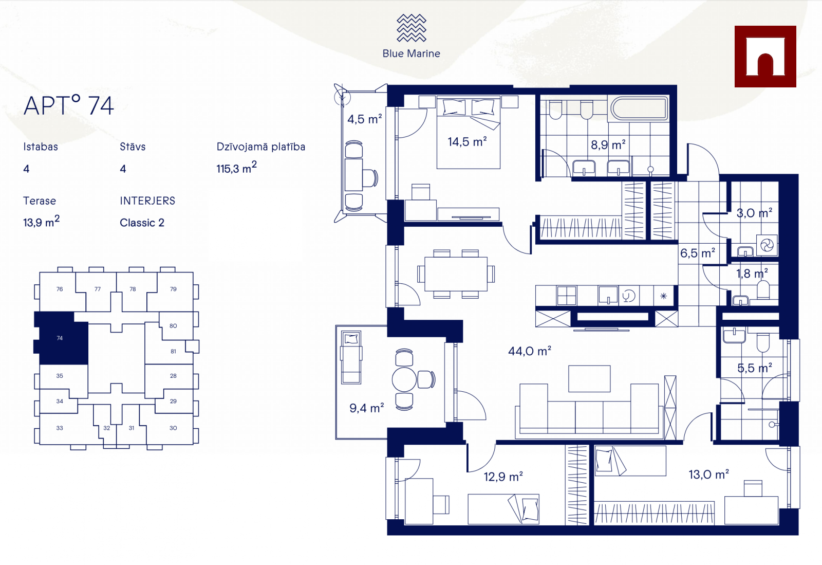 Blue Marine — очередной жилой дом в квартале Кливерсала, который развивается как единая жилая среда, гармонично сочетающая в себе исторический колорит, современную архитектуру и продуманный ландшафтный дизайн территории. Расположение проекта в окружении природы, прямо на берегу Агенскалнского залива Даугавы, рядом с парком, создаст особое ощущение покоя и умиротворения в повседневной жизни.