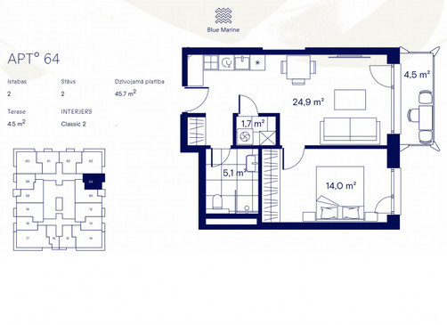 Проект Blue Marine связан с особым очарованием полуострова Кливерсала. Название отражает романтическую атмосферу Средиземноморья — солнечного полуострова, окруженного Агенскалнским заливом, Даугавой и близостью моря. Кроме того, полуостров Кливерсала исторически ассоциировался с мореплавателями и кораблями, а также с торговой логистикой по воде.