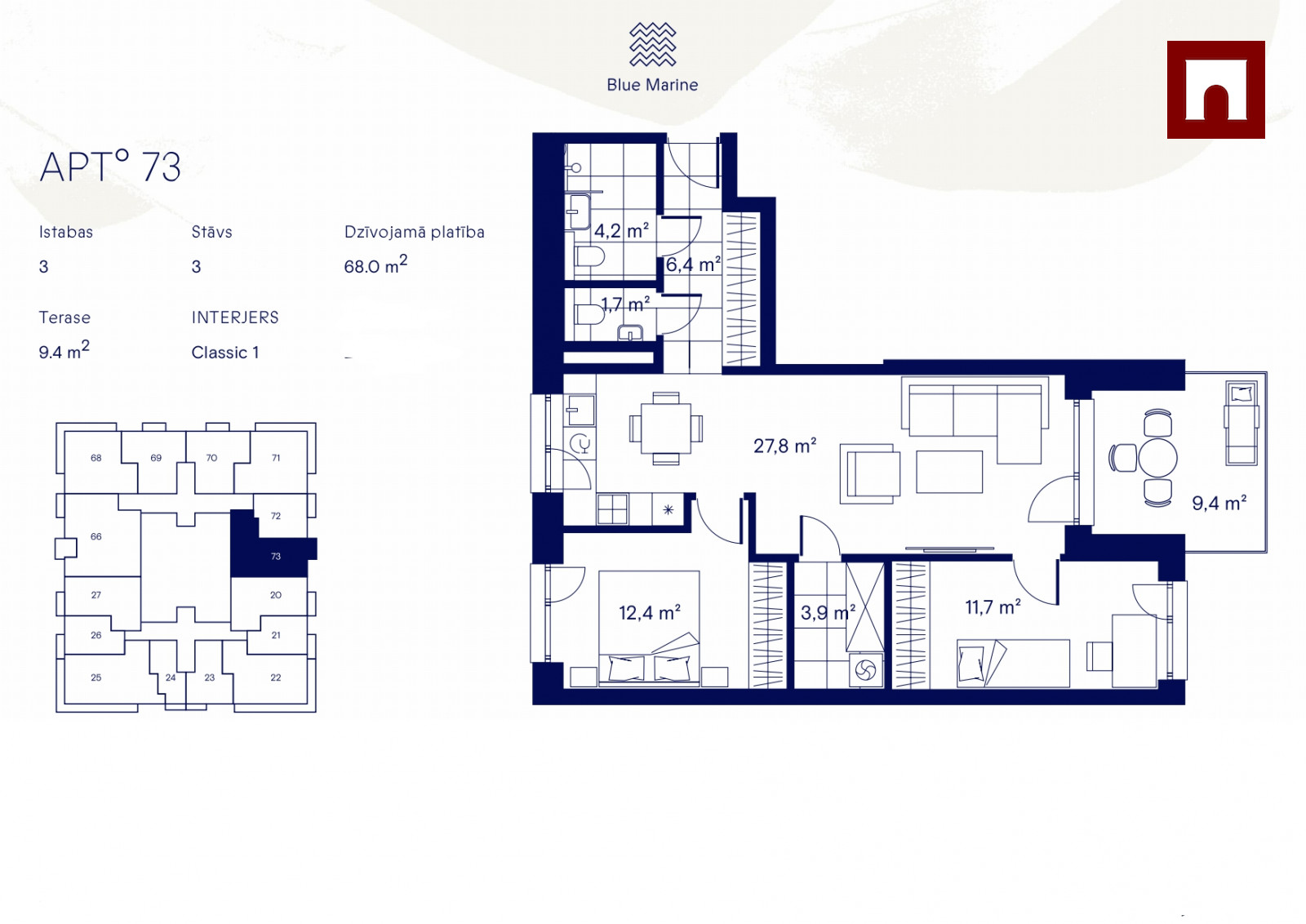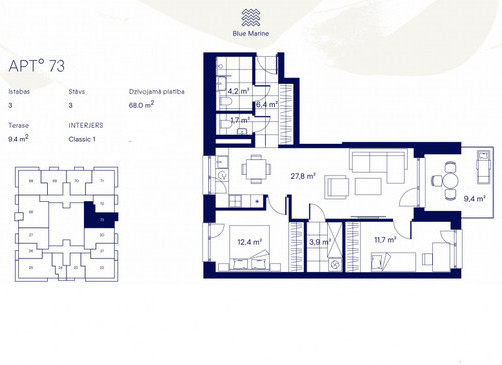 Blue Marine — очередной жилой дом в квартале Кливерсала, который развивается как единая жилая среда, гармонично сочетающая в себе исторический колорит, современную архитектуру и продуманный ландшафтный дизайн территории. Расположение проекта в окружении природы, прямо на берегу Агенскалнского залива Даугавы, рядом с парком, создаст особое ощущение покоя и умиротворения в повседневной жизни.