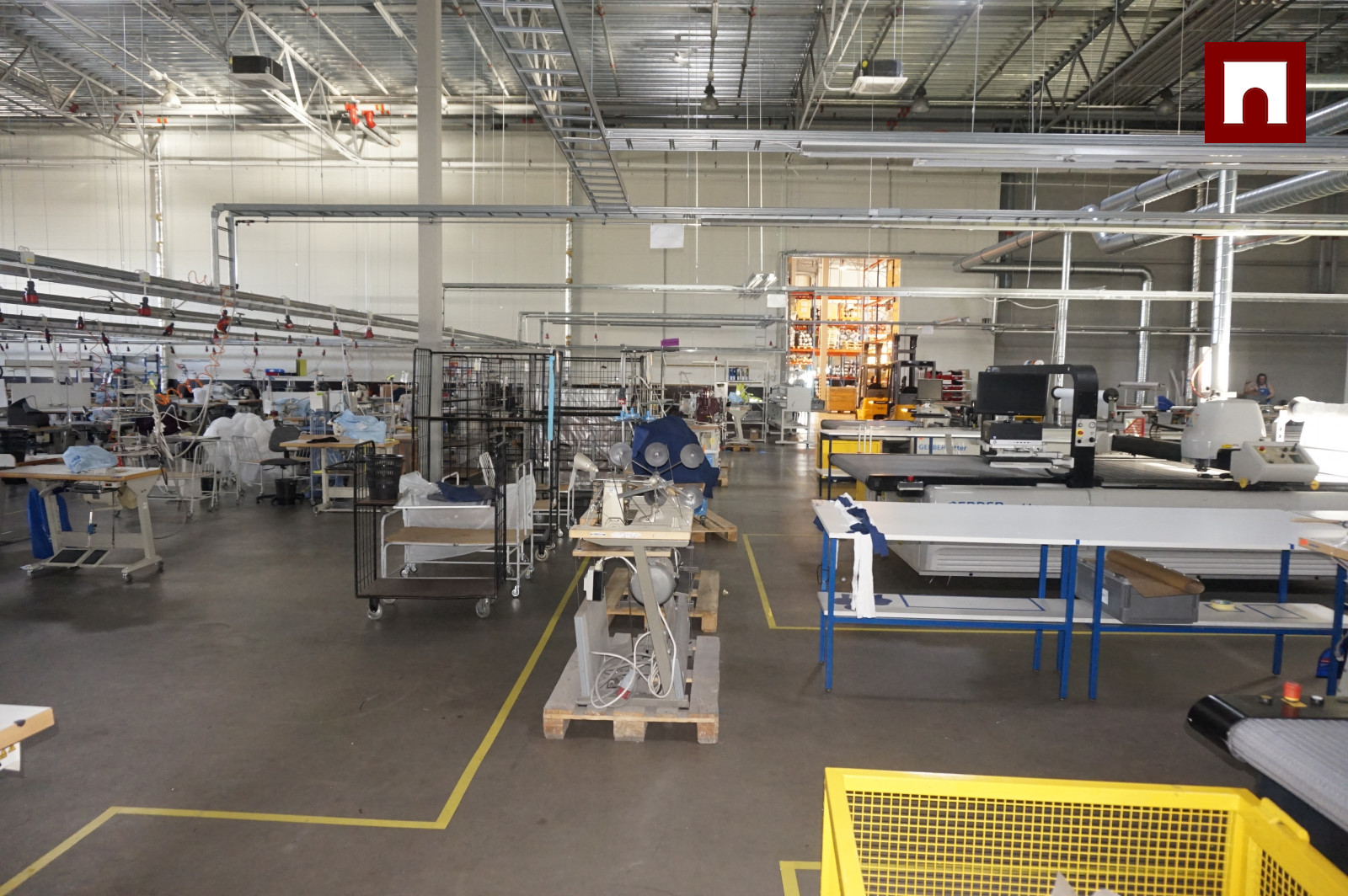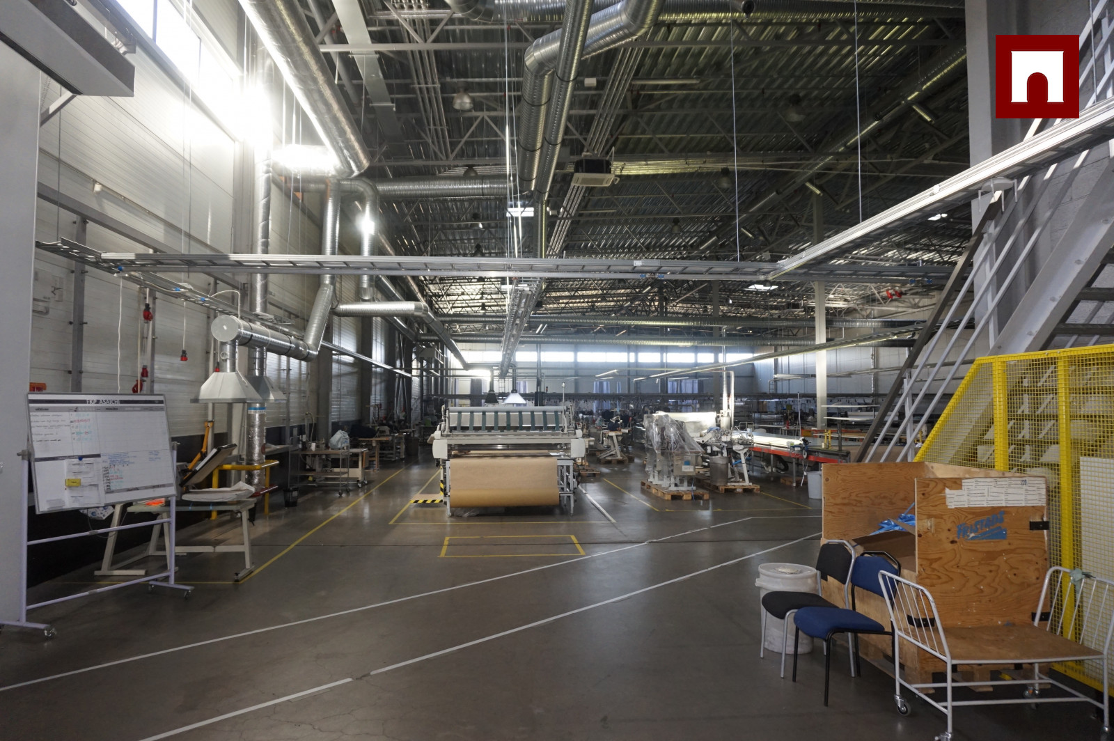 Помещения оборудованы системой противопожарной защиты с гидрантами, системой вентиляции, а также газовым отоплением с воздухонагревателями. При необходимости можно приобрести кондиционеры у предыдущего арендатора. Благодаря надлежащей теплоизоляции здания и системе воздухообмена, расходы на отопление относительно низкие.