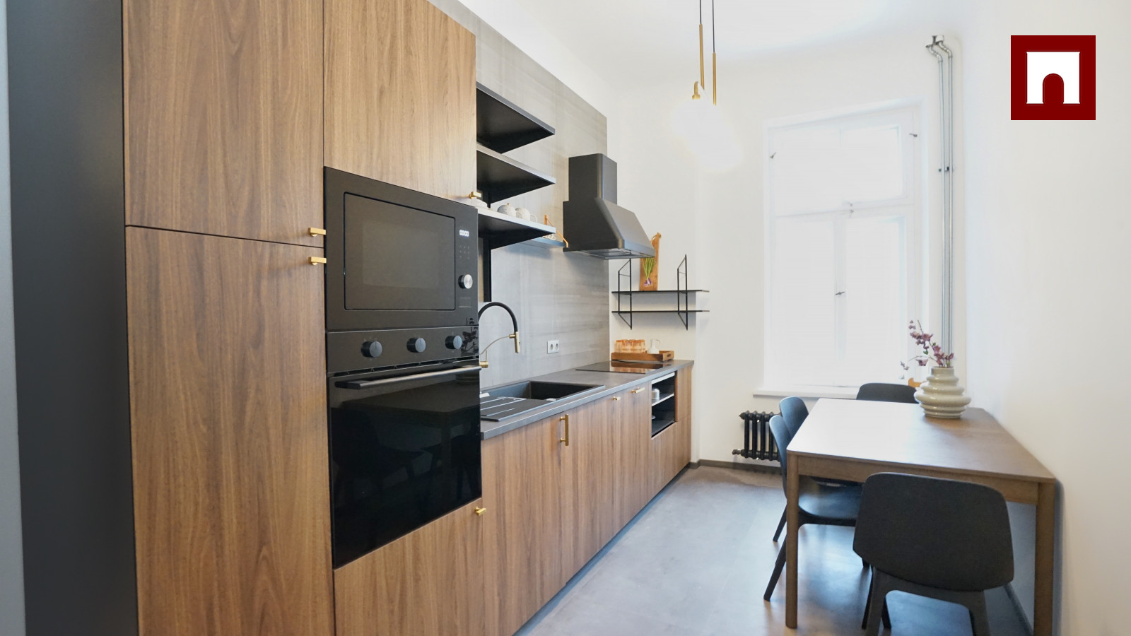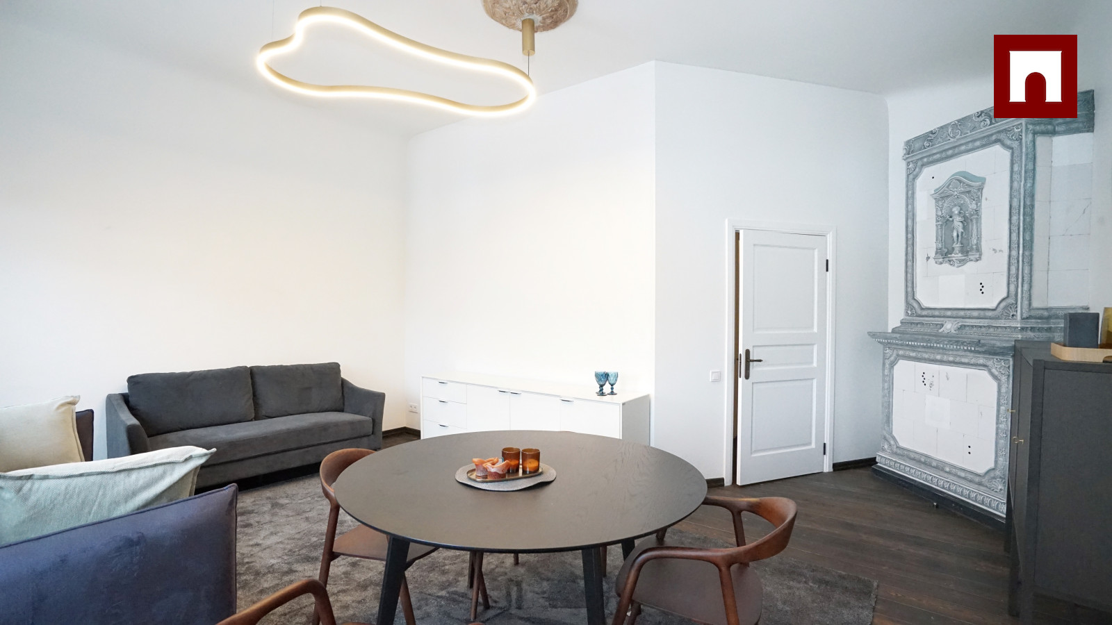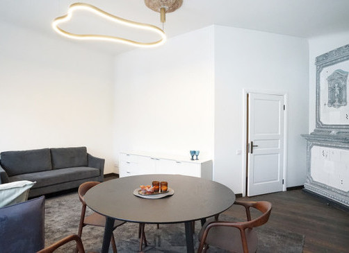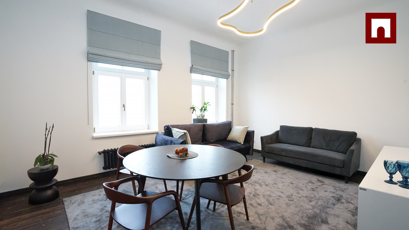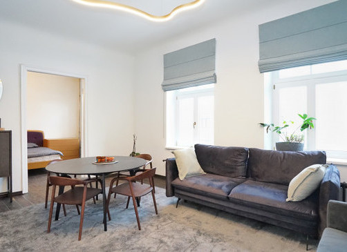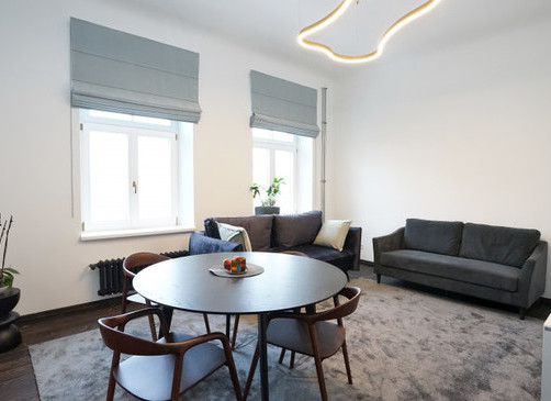 The apartment has preserved an authentic historical atmosphere, combining it with modern comfort. Restored century-old wooden floors, installed high-quality Flora wooden double-glazed windows with high sound insulation. The property has just been renovated.