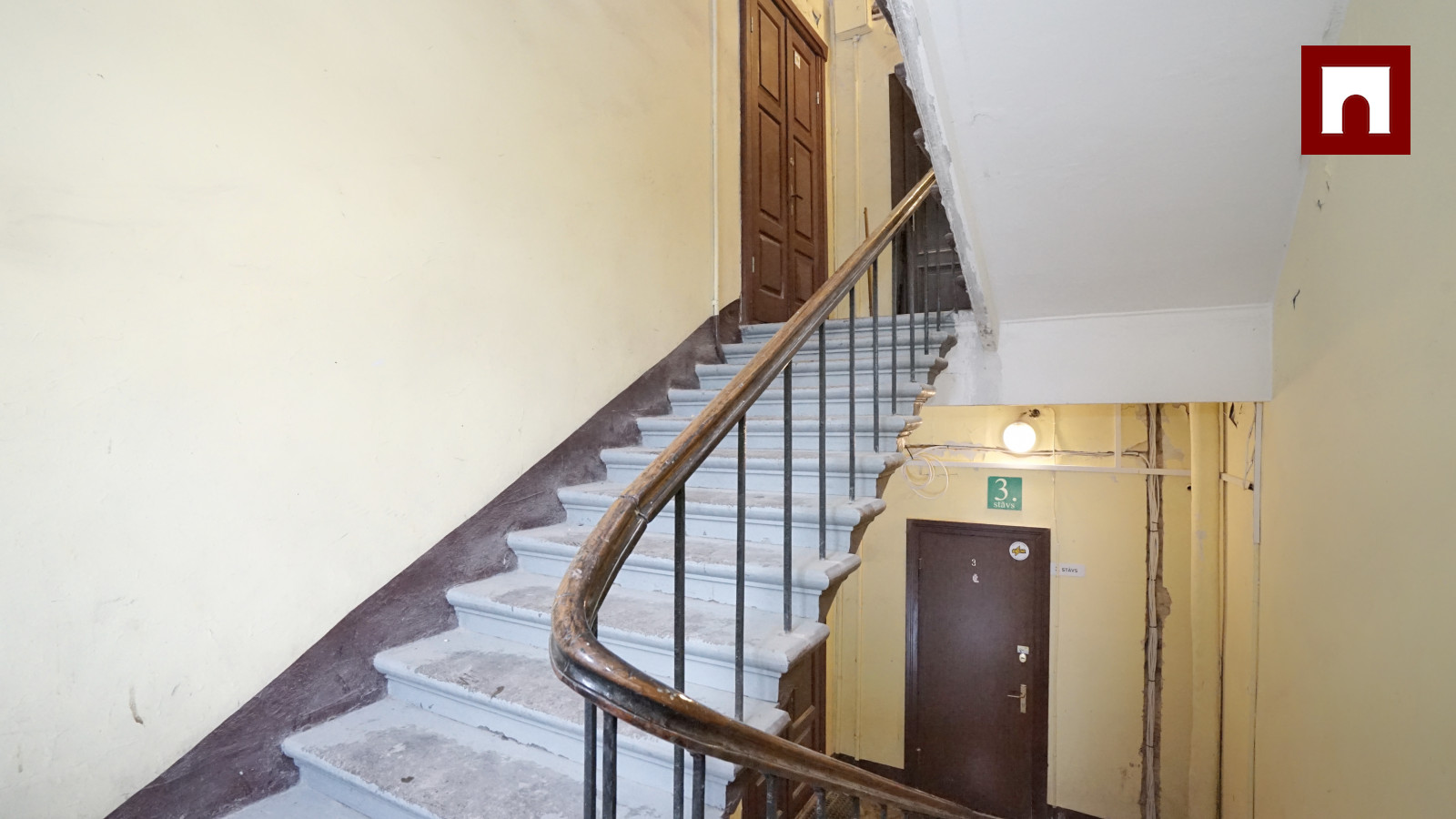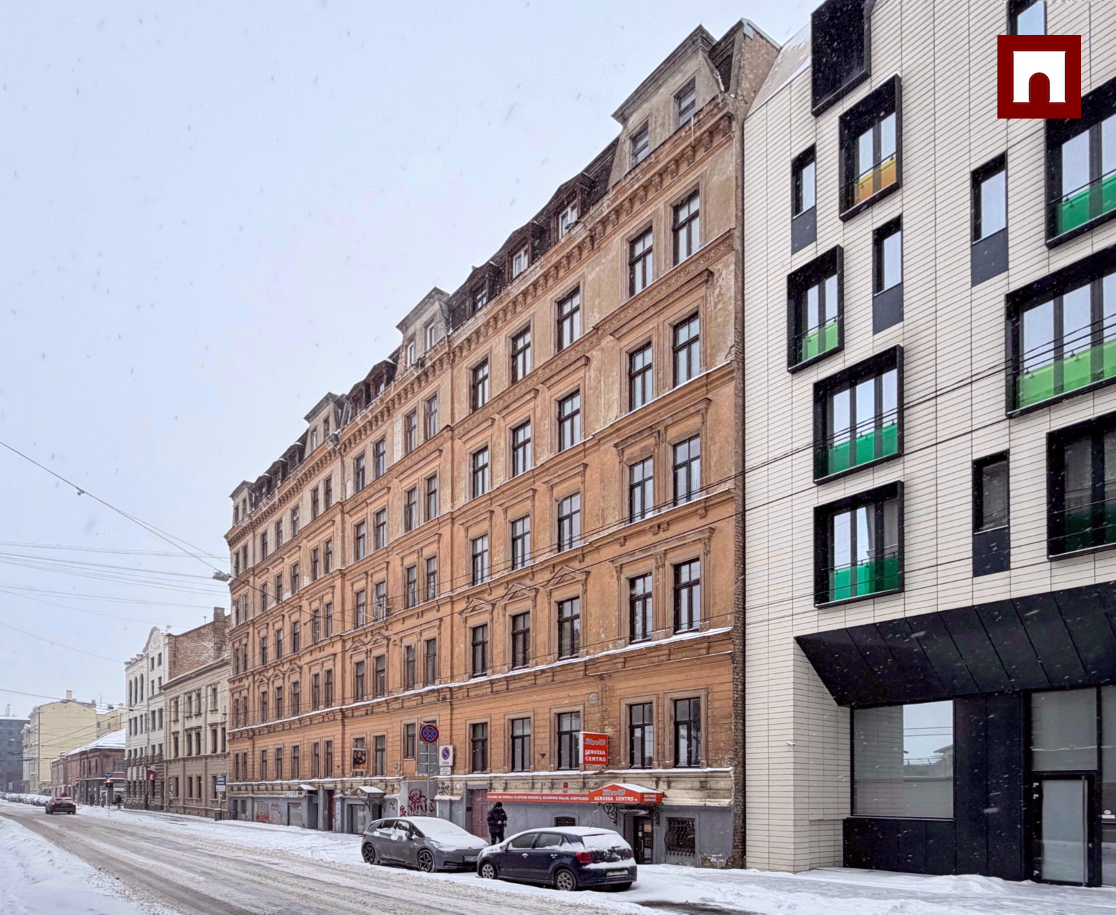 For long-term rent, a newly renovated three-room apartment (2 bedrooms) on the 4th floor of a historical building.