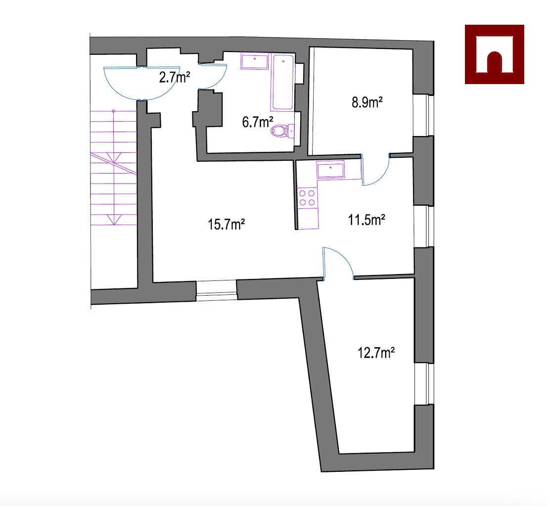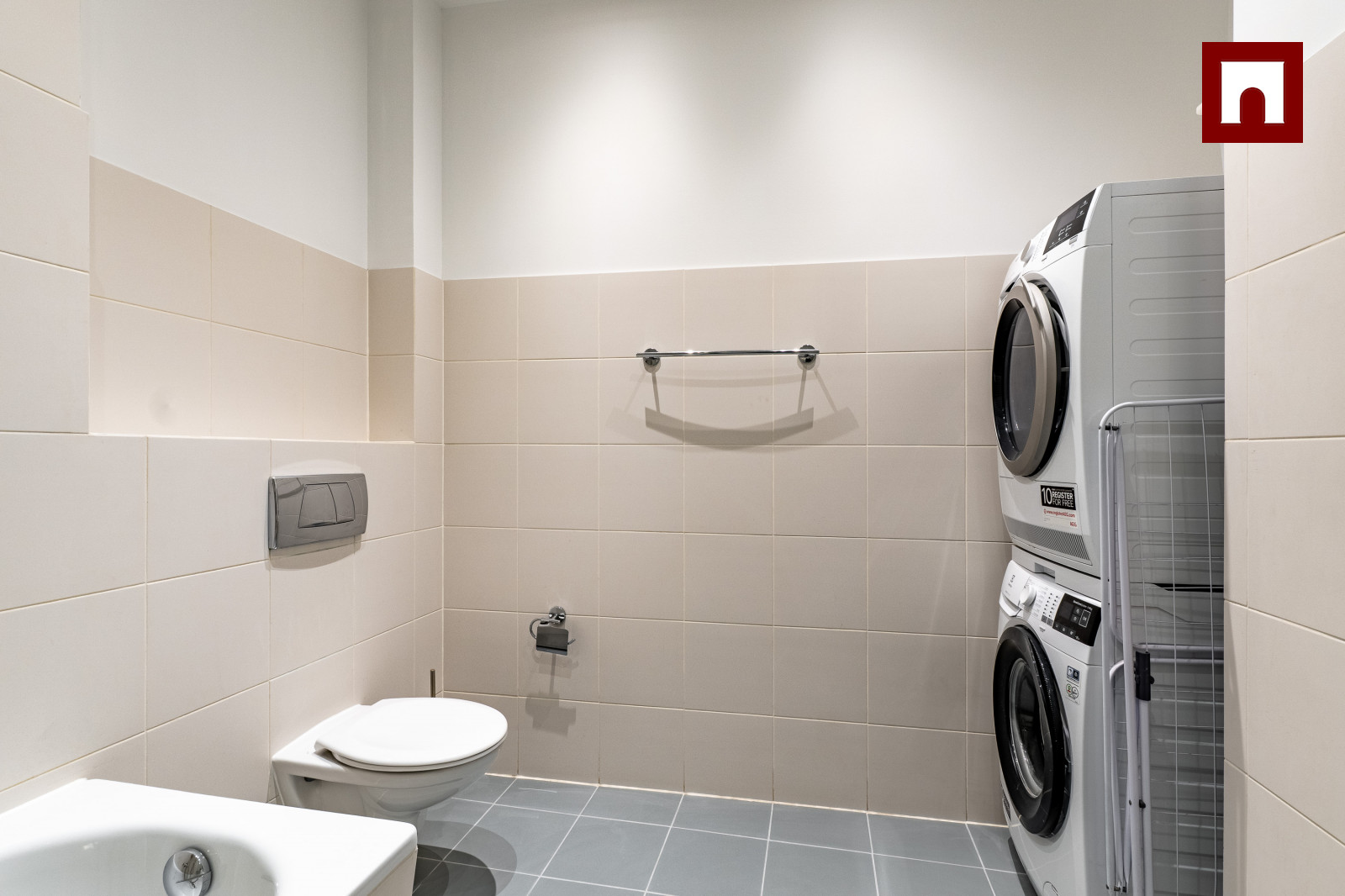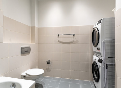 The apartment is located on the 3rd floor (no elevator) with an entrance from a quiet courtyard. The apartment is partially furnished and equipped with household appliances, including a washing machine and dryer.